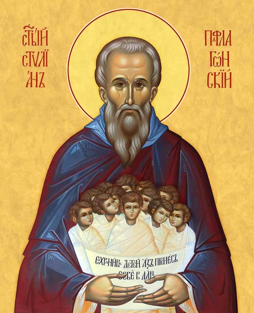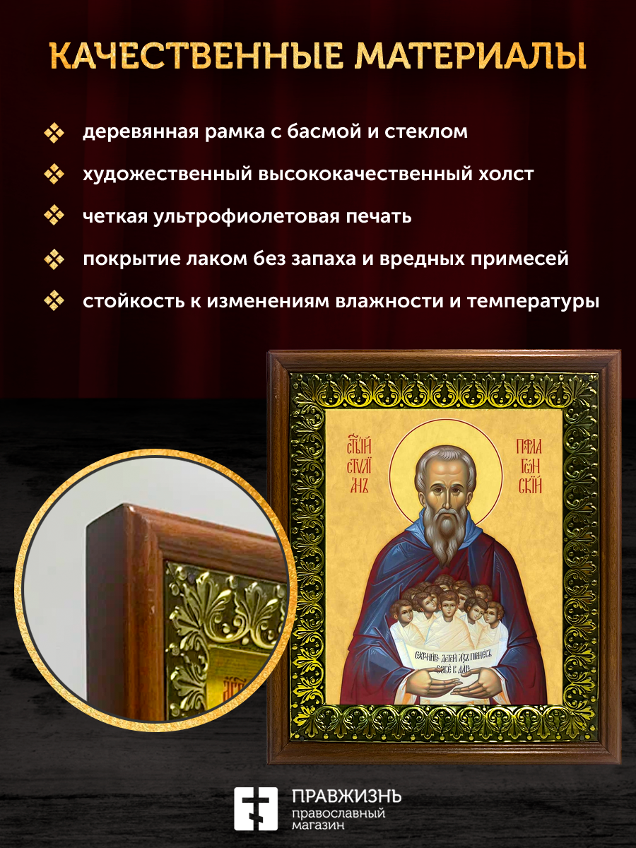 Икона Стилиан Пафлагонский преподобный, деревянная рамка с басмой и стеклом 18х21х2,5 см 1102