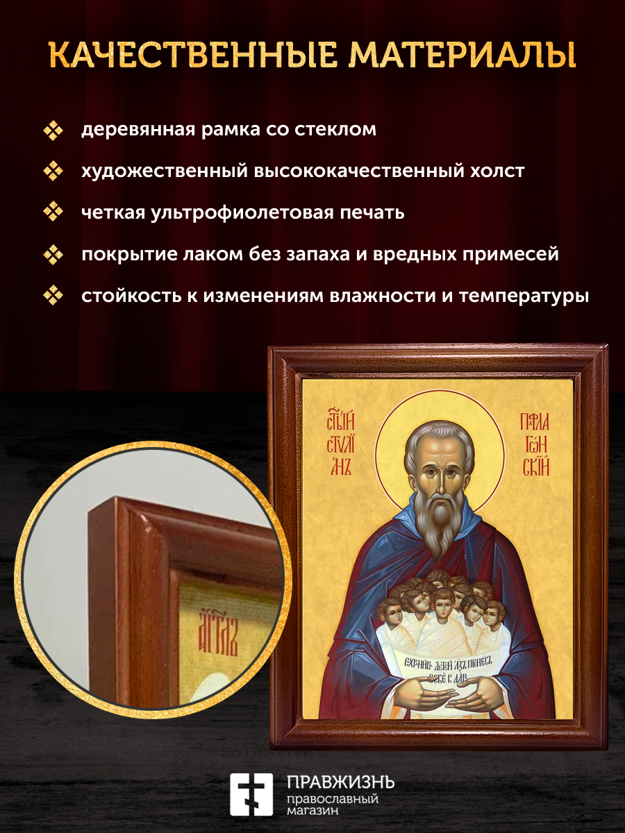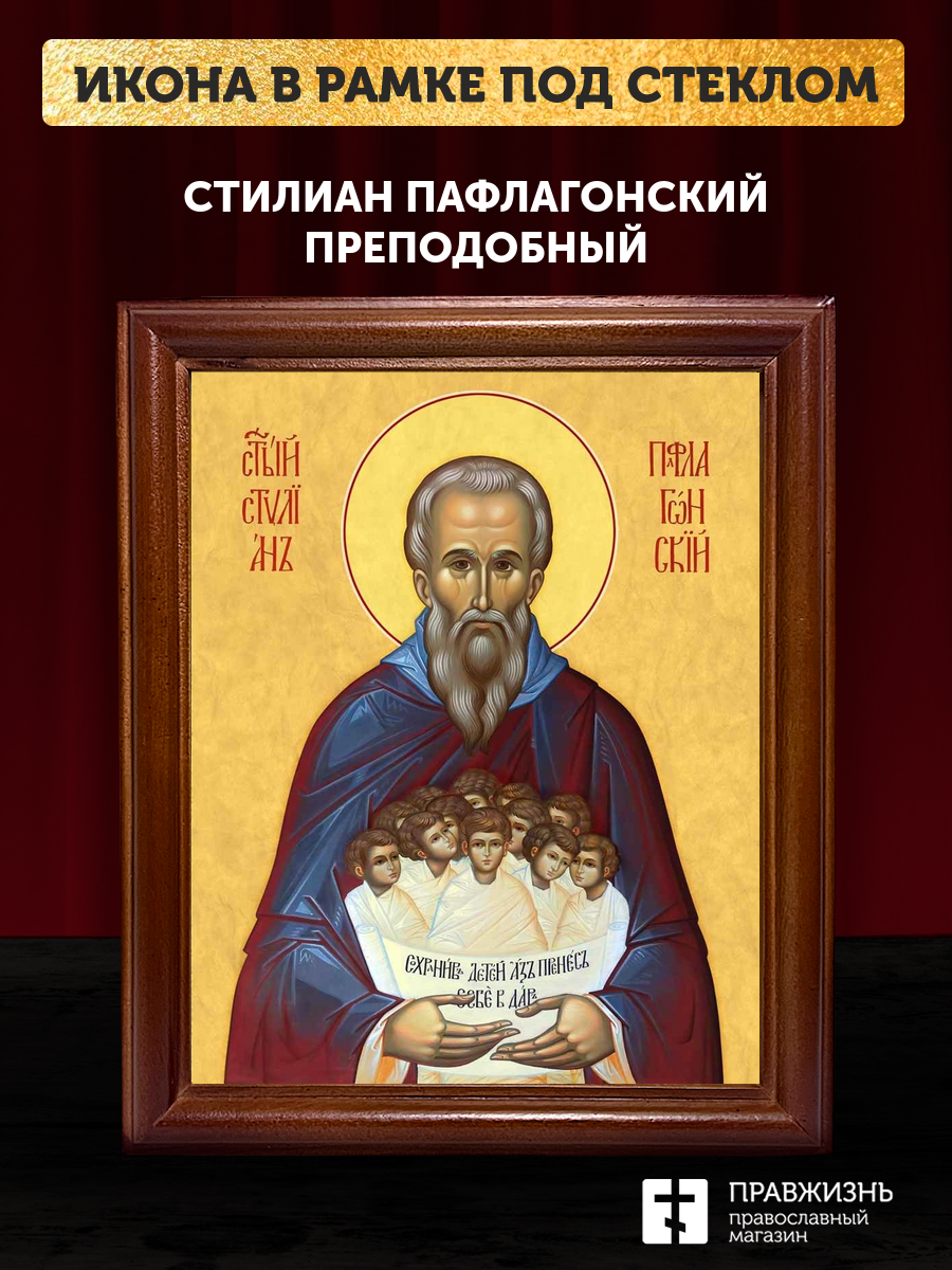 Икона Стилиан Пафлагонский преподобный, деревянная рамка со стеклом 15х18х2 см 1102