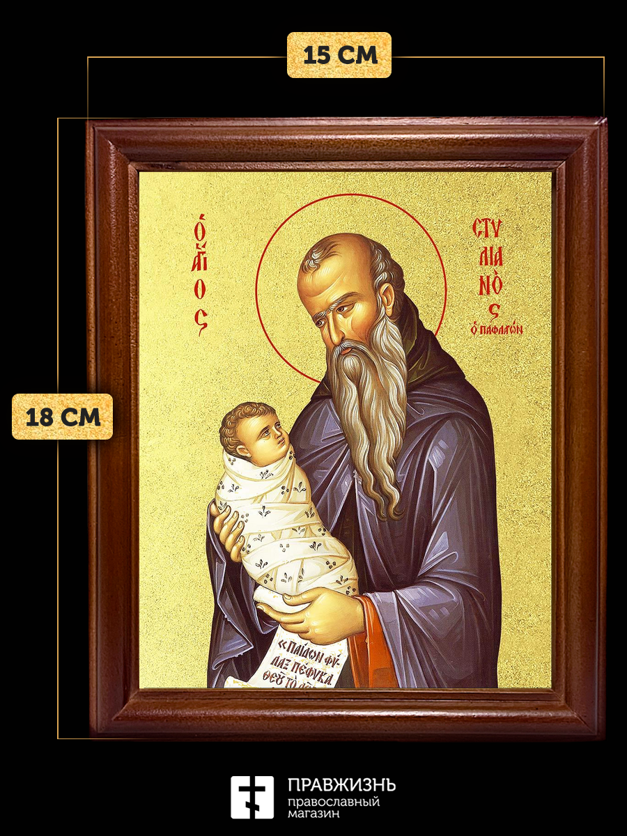 Икона Стилиан Пафлагонский преподобный с золочением, деревянная рамка со стеклом 15х18х2 см 1102