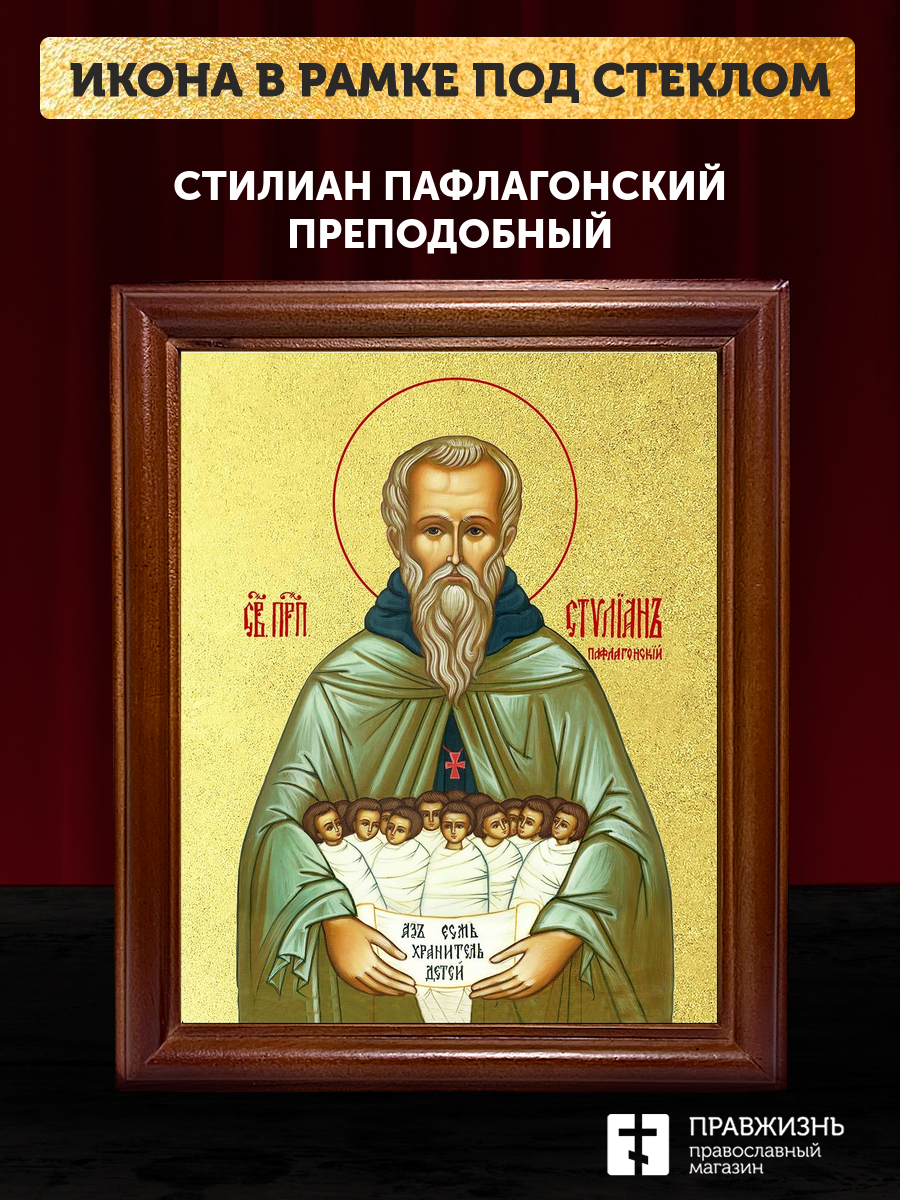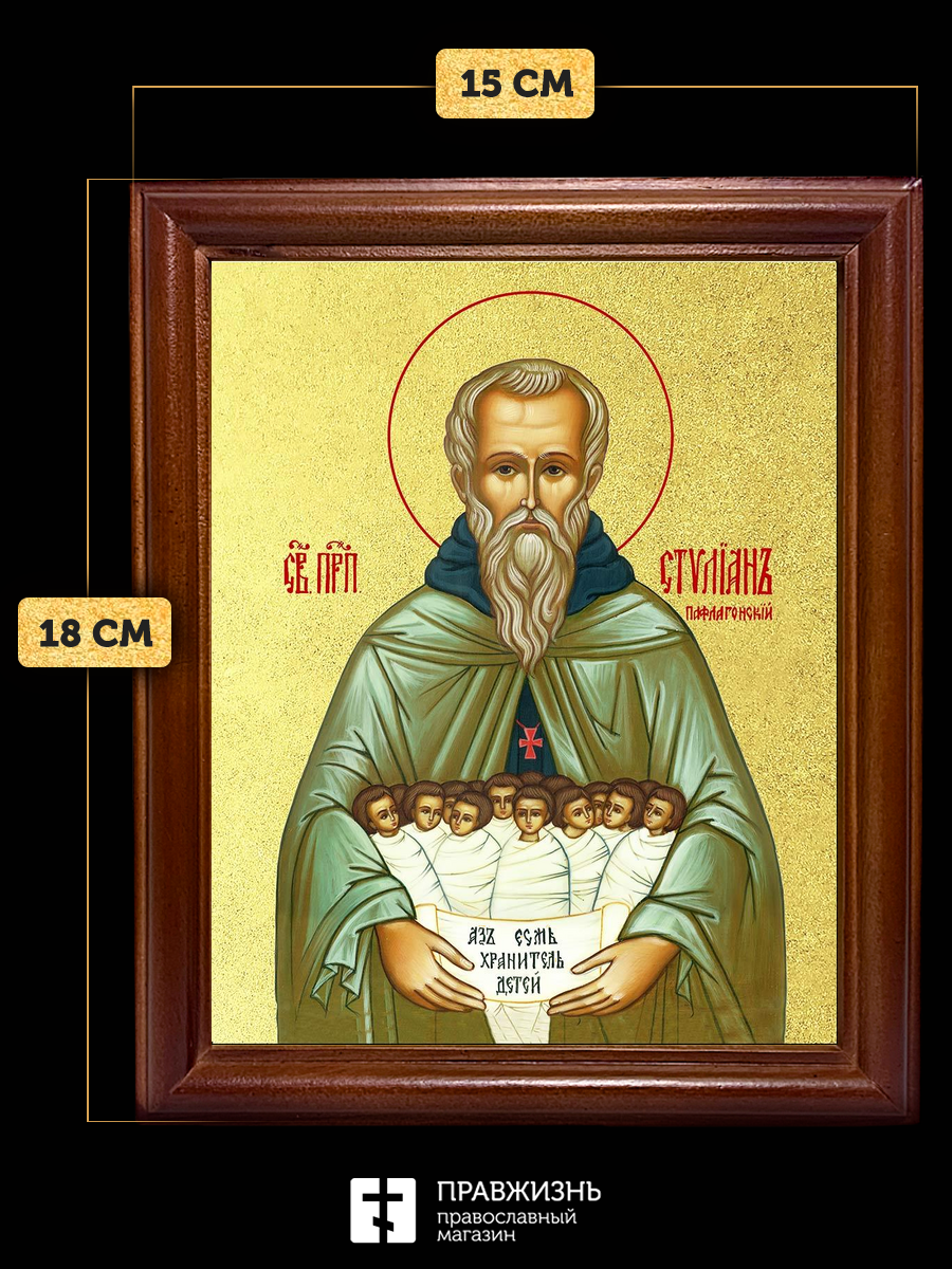 Икона Стилиан Пафлагонский преподобный с золочением, деревянная рамка со стеклом 15х18х2 см 1102