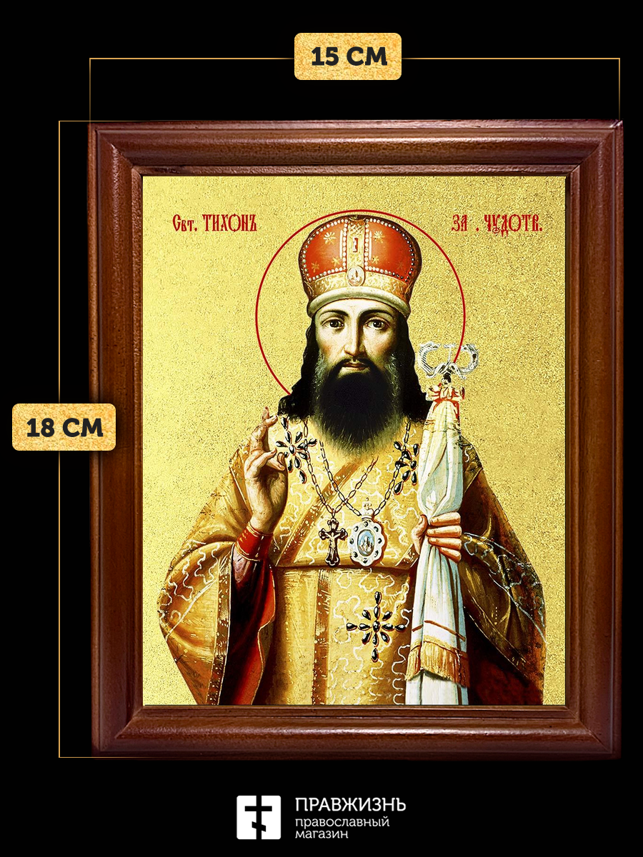 Икона Тихон Задонский святитель с золочением, деревянная рамка со стеклом 15х18х2 см 139