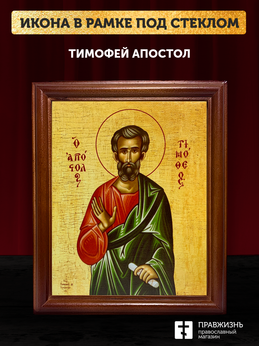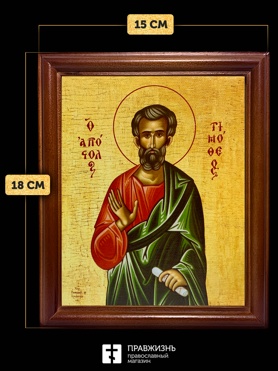 Икона Тимофей апостол, деревянная рамка со стеклом 15х18х2 см 138