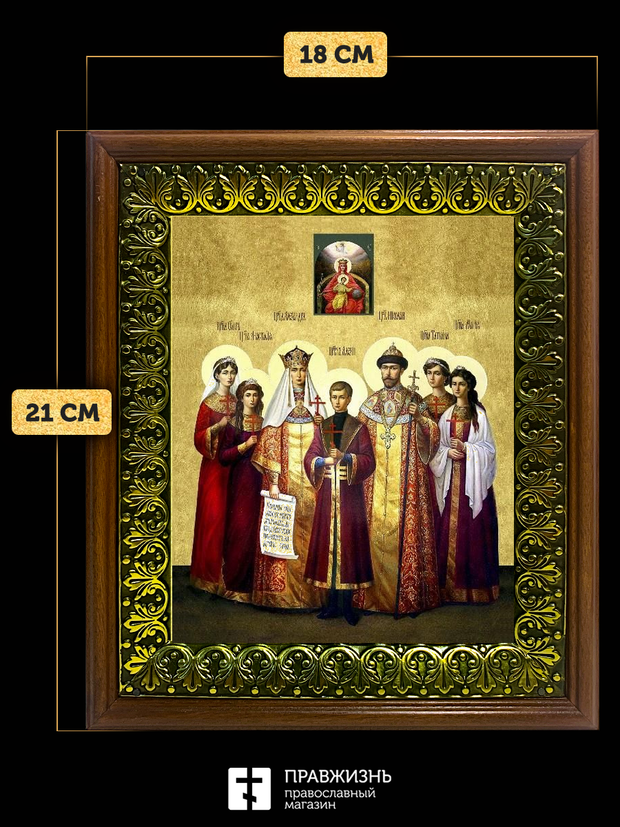 Икона Царская семья, деревянная рамка с басмой и стеклом 18х21х2,5 см 001