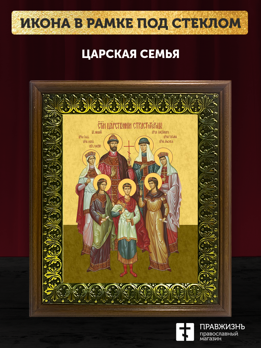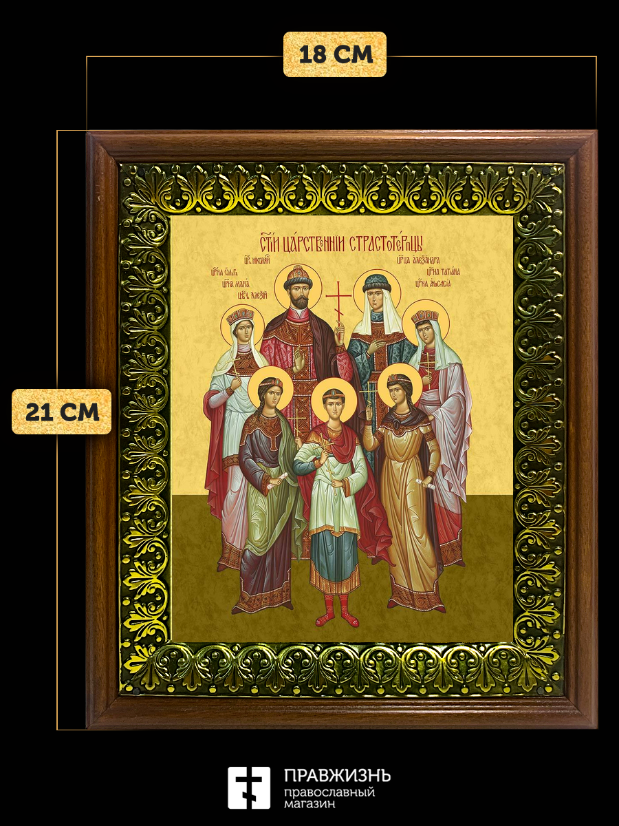 Икона Царская семья, деревянная рамка с басмой и стеклом 18х21х2,5 см 001