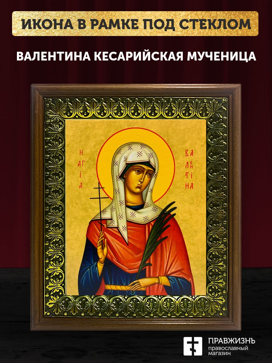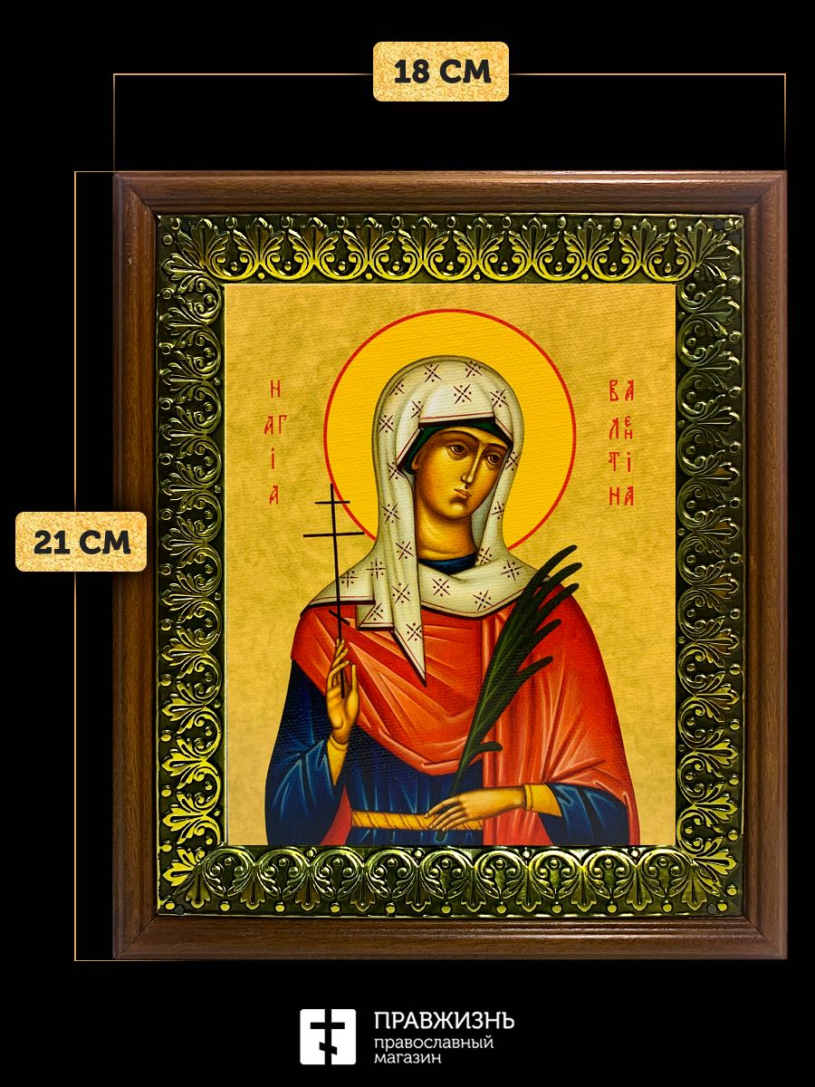Икона Валентина Кесарийская мученица, деревянная рамка с басмой и стеклом 18х21х2,5 см 038