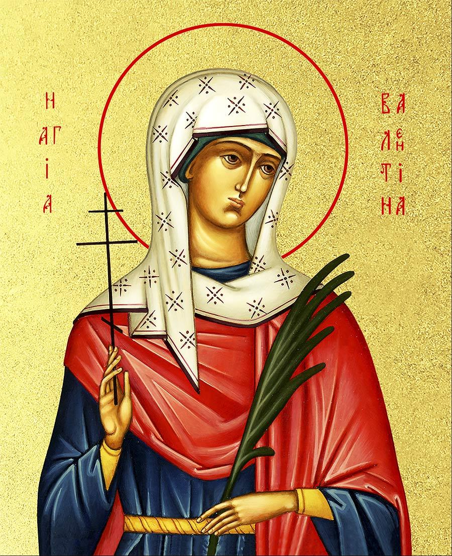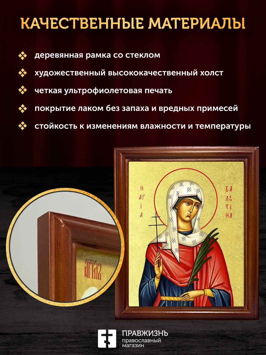 Икона Валентина Кесарийская мученица с золочением, деревянная рамка со стеклом 15х18х2 см 019