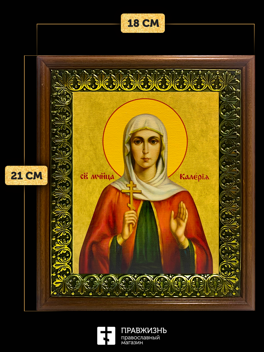 Икона Валерия Калерия мученица, деревянная рамка с басмой и стеклом 18х21х2,5 см 040