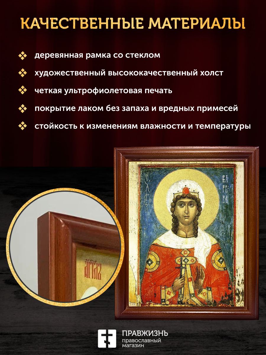 Икона Варвара великомученица с золочением, деревянная рамка со стеклом 15х18х2 см 041
