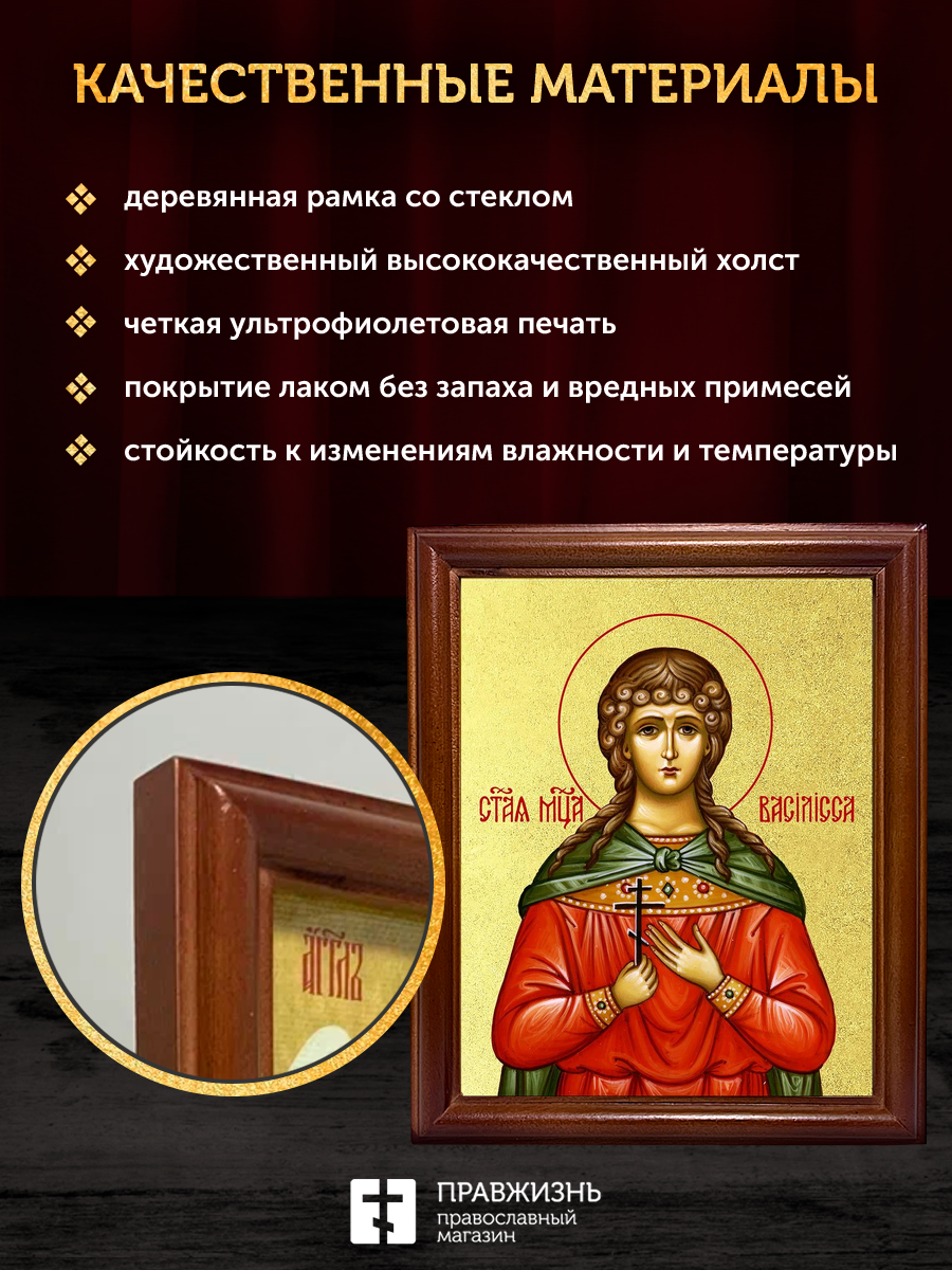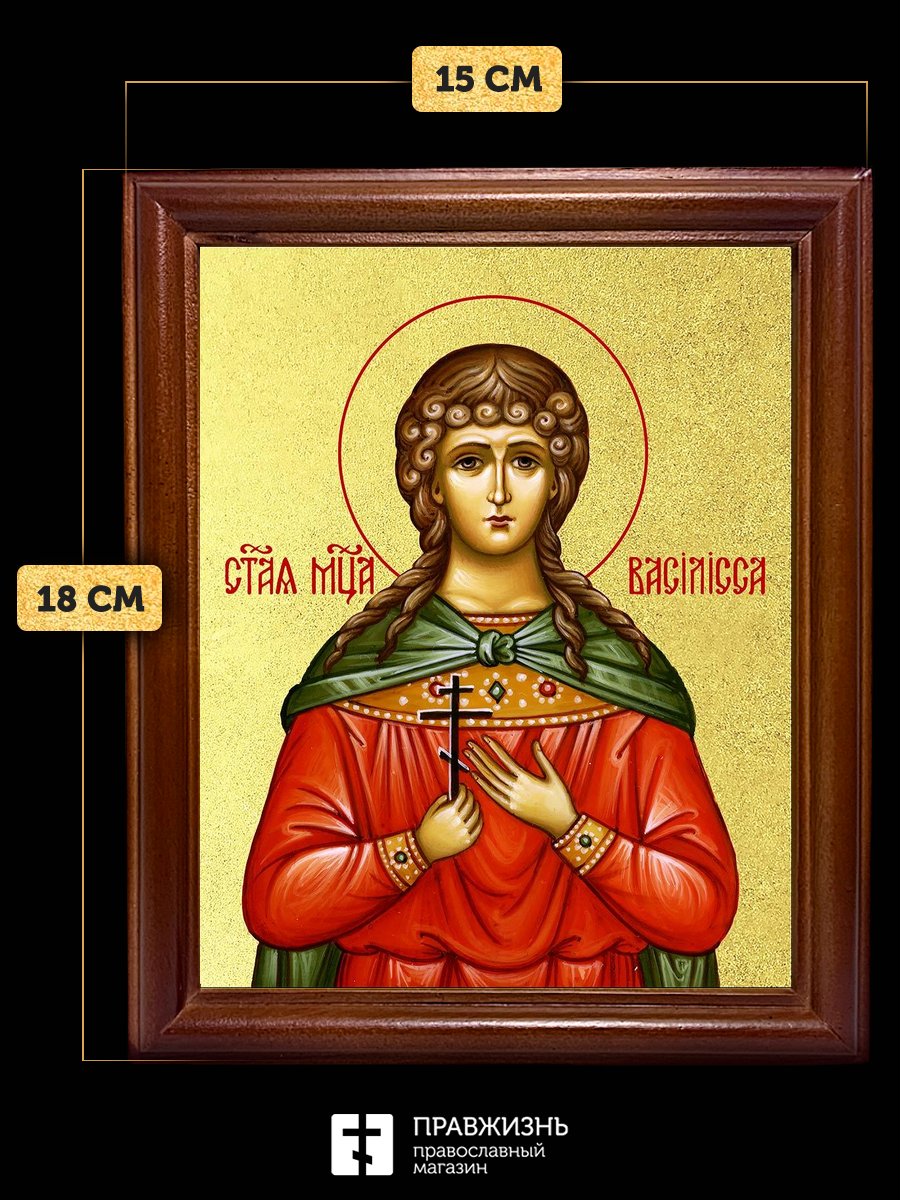 Икона Василиса мученица с золочением, деревянная рамка со стеклом 15х18х2 см 152