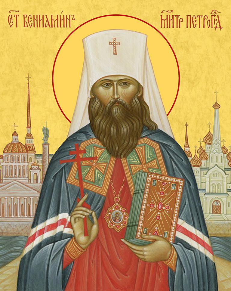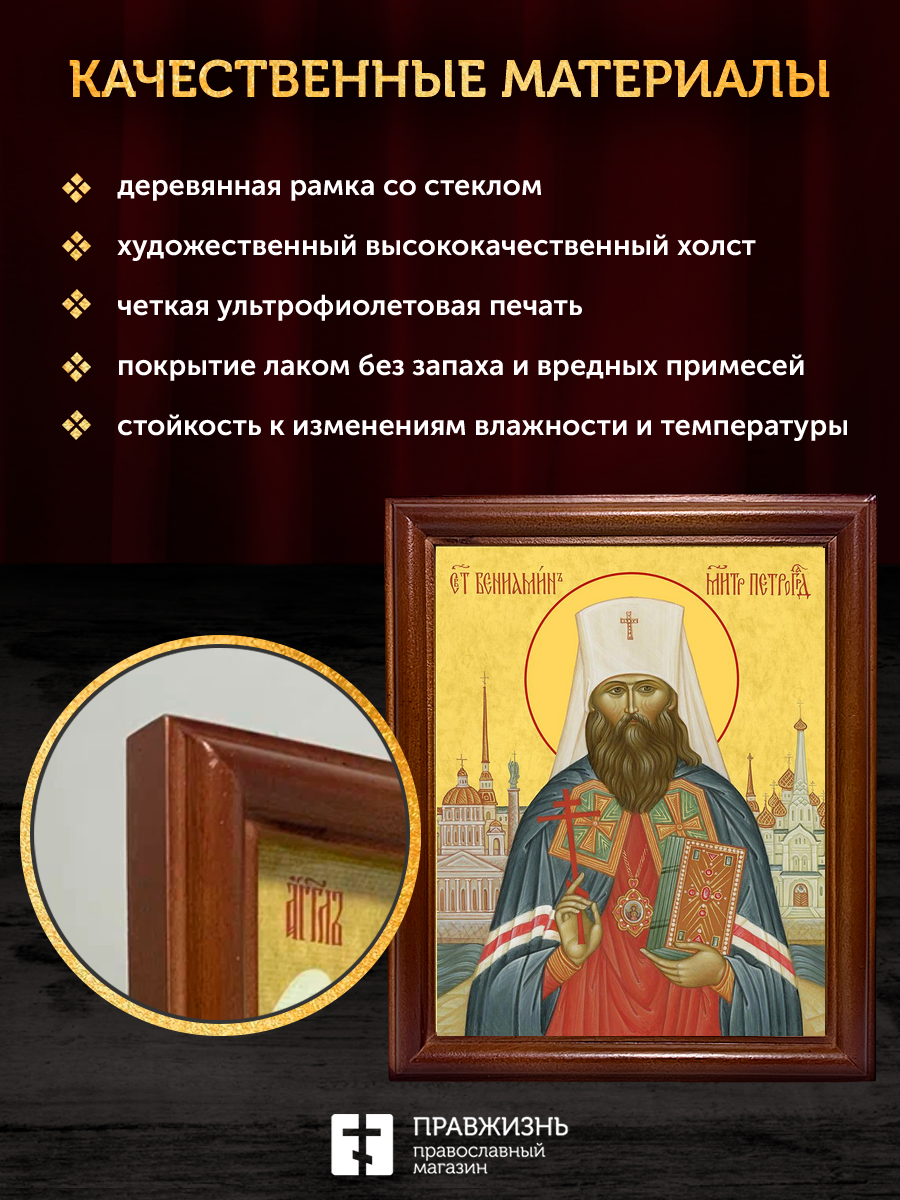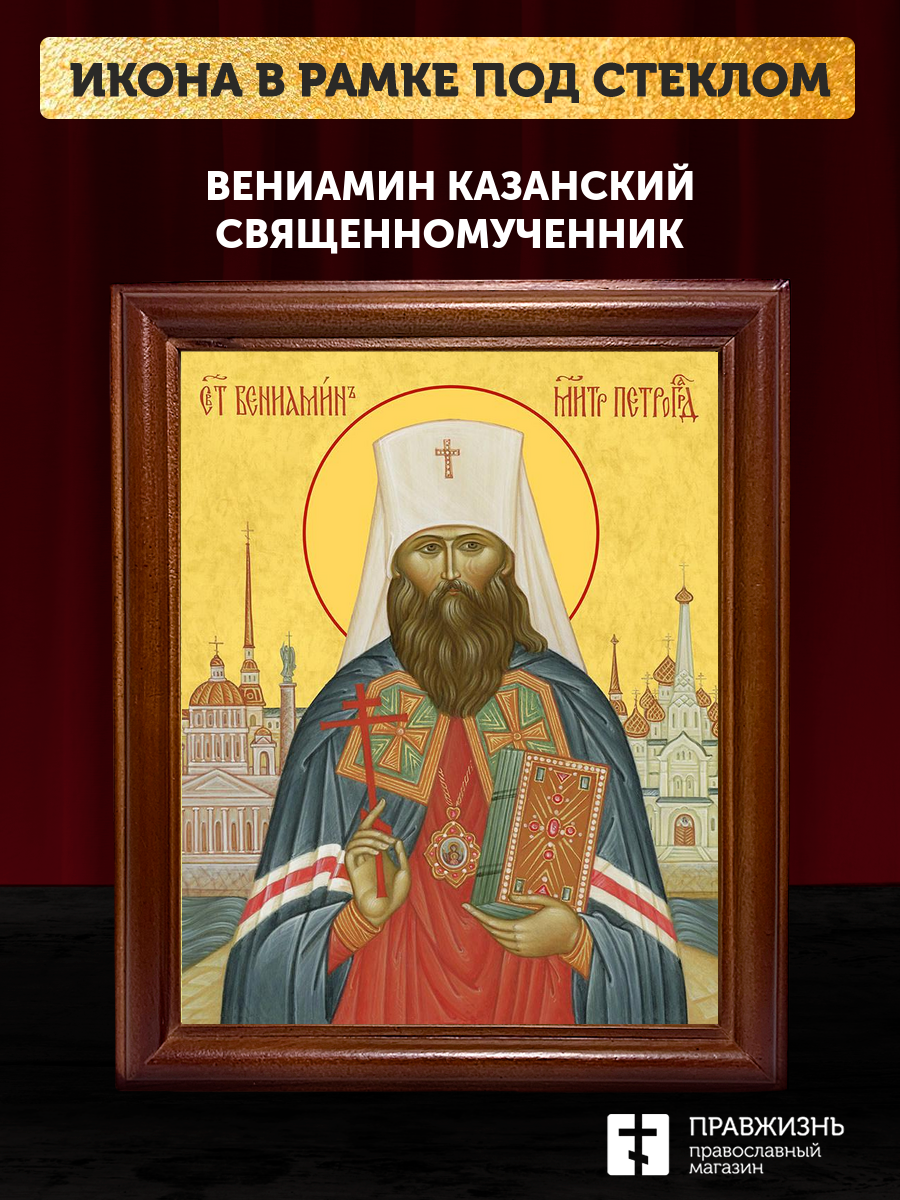 Икона Вениамин Казанский священномученик, деревянная рамка со стеклом 15х18х2 см 322А