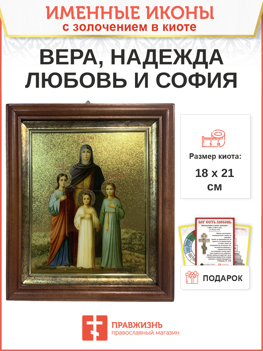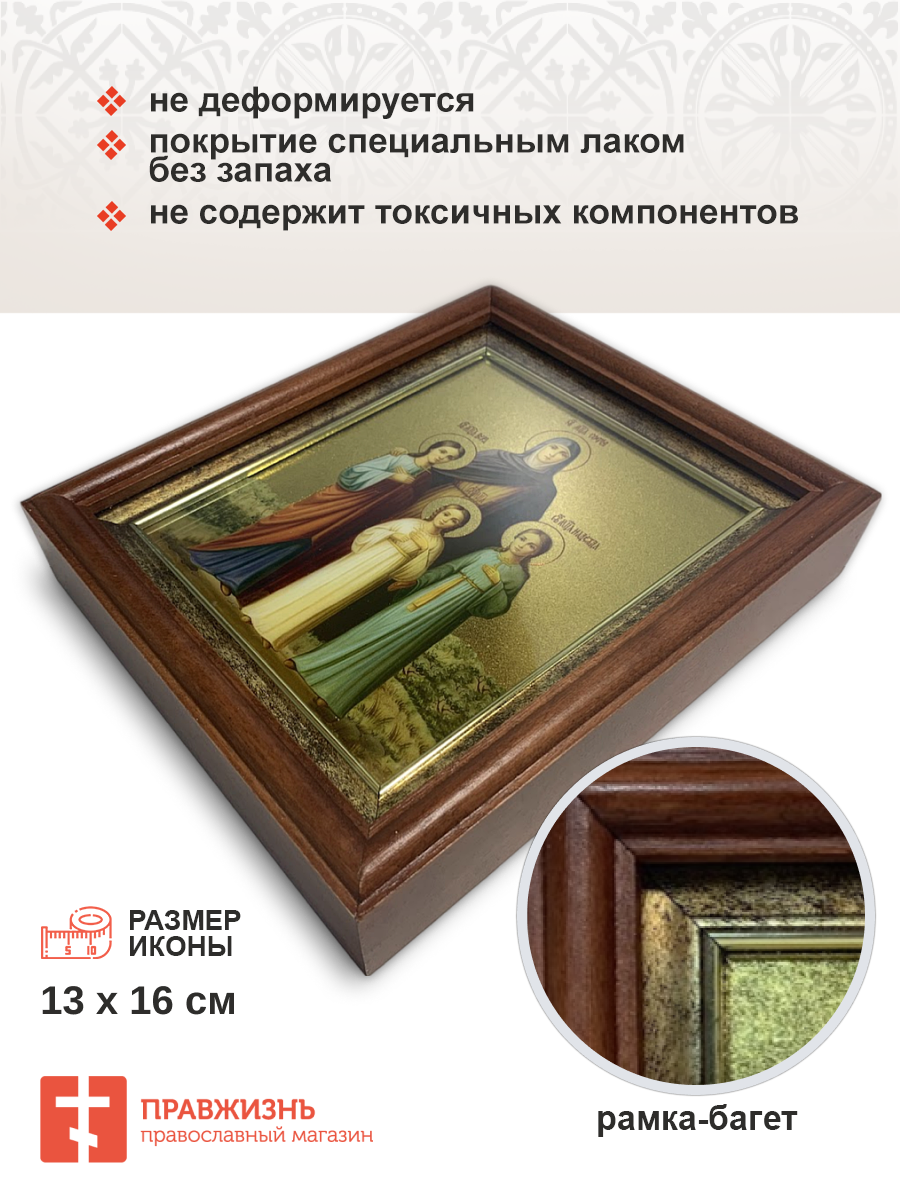 Икона Вера, Надежда, Любовь и мать их София мученицы киот 18х21х4 см