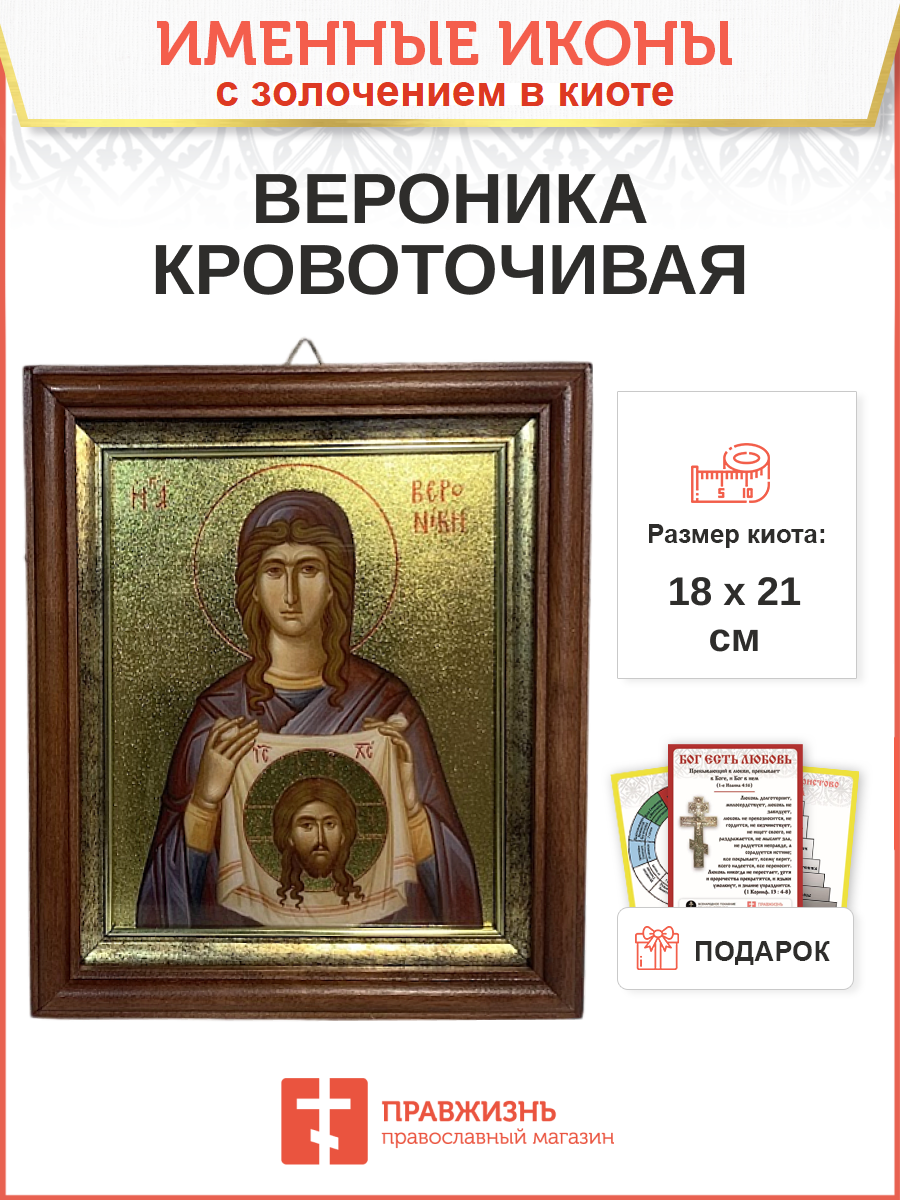 Икона Вероника Кровоточивая праведная с золочением в киоте 18х21х4 см