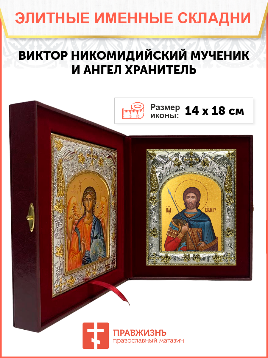 Ангел Хранитель, изображенный рядом, символизирует невидимую защиту и помощь, даруемую каждому верующему. Он – небесный заступник, оберегающий от бед и направляющий на путь истинный. Совместное изображение Виктора Никомидийского и Ангела Хранителя подчеркивает связь между земным и небесным, напоминая о постоянной поддержке свыше.
