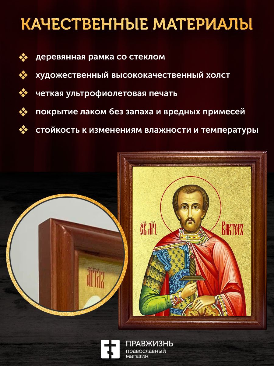 Икона Виктор Халкидонский мученик с золочением, деревянная рамка со стеклом 15х18х2 см 046