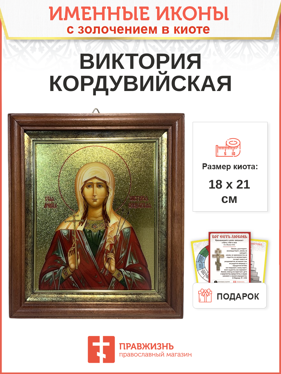 Икона 1 шт, киот-пенал со стеклом 1 шт, подарок 1 шт