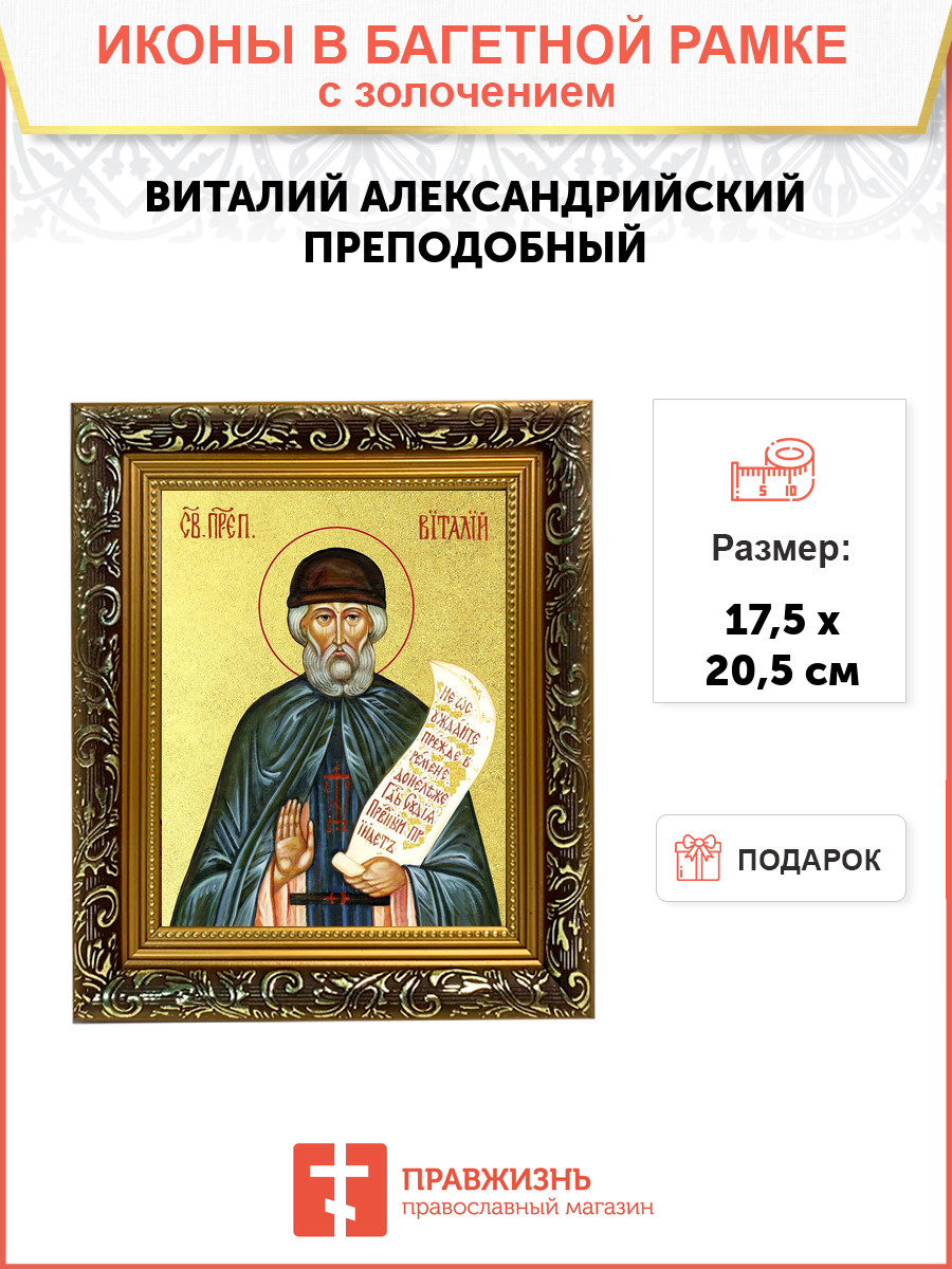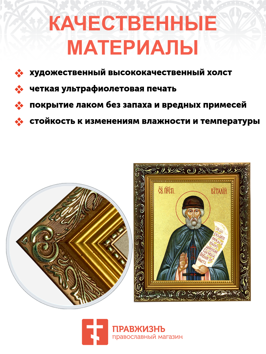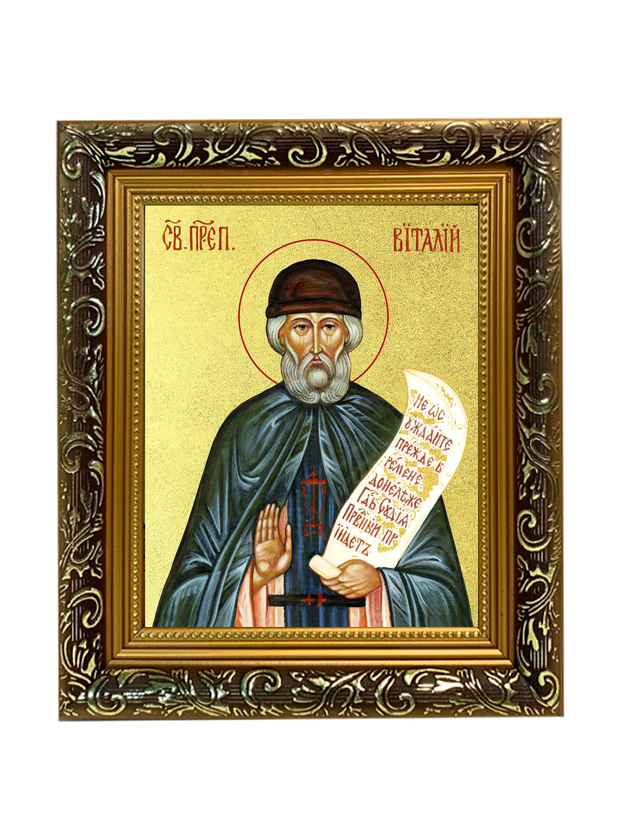 Икона "Виталий Александрийский", св. прп., с золочением поталью, 09В8-УЛ