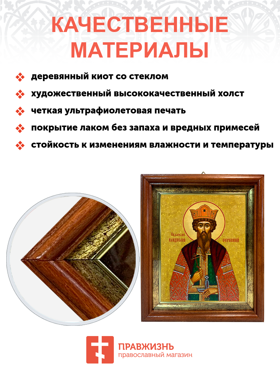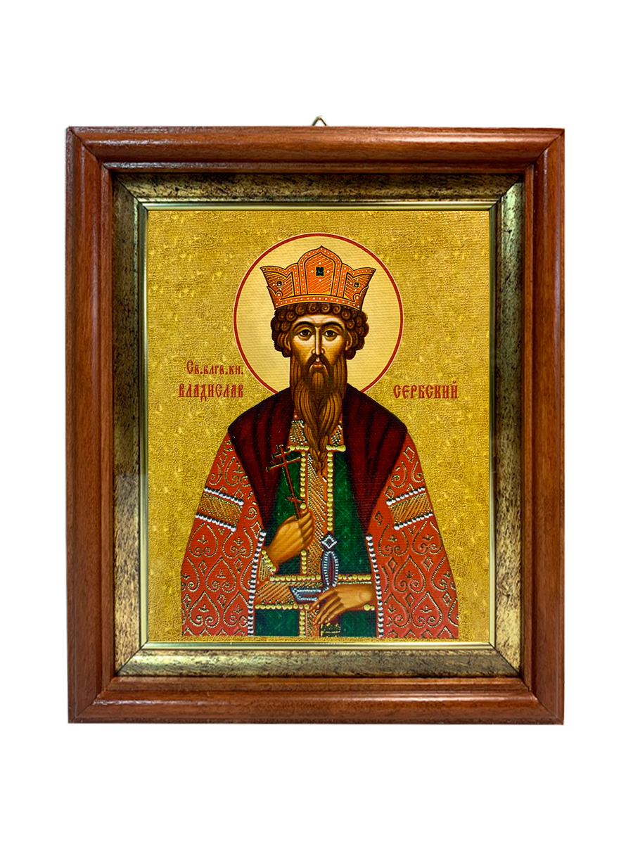 Именная икона Владислав Сербский Благоверный Князь на холсте в киоте 051