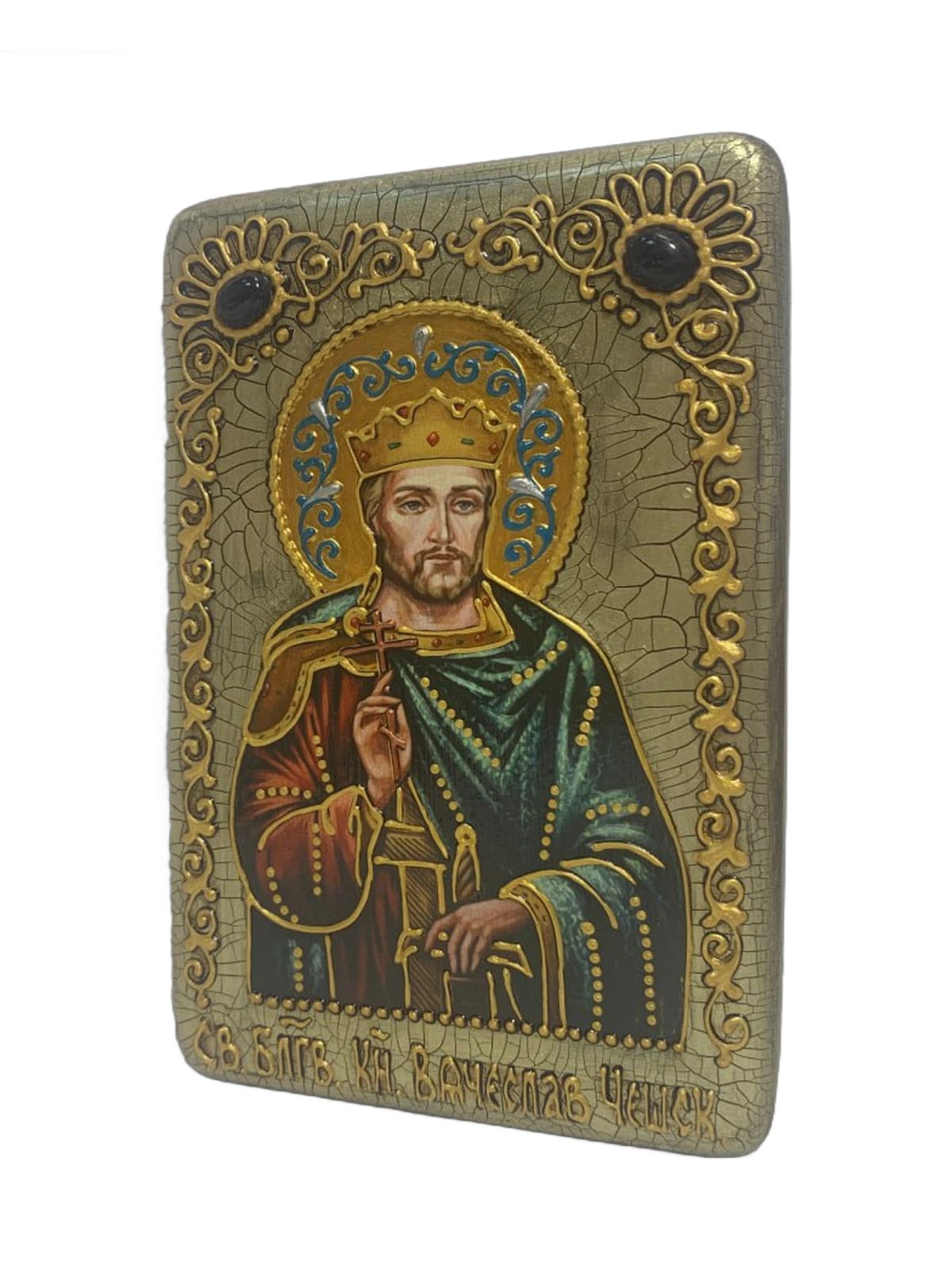 Подарочная икона ''Святой Благоверный князь Вячеслав Чешский'' на мореном дубе