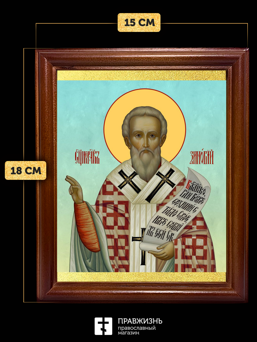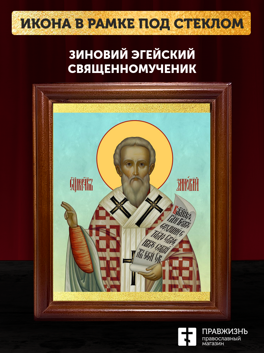 Икона Зиновий Эгейский священномученик, деревянная рамка со стеклом 15х18х2 см 1213