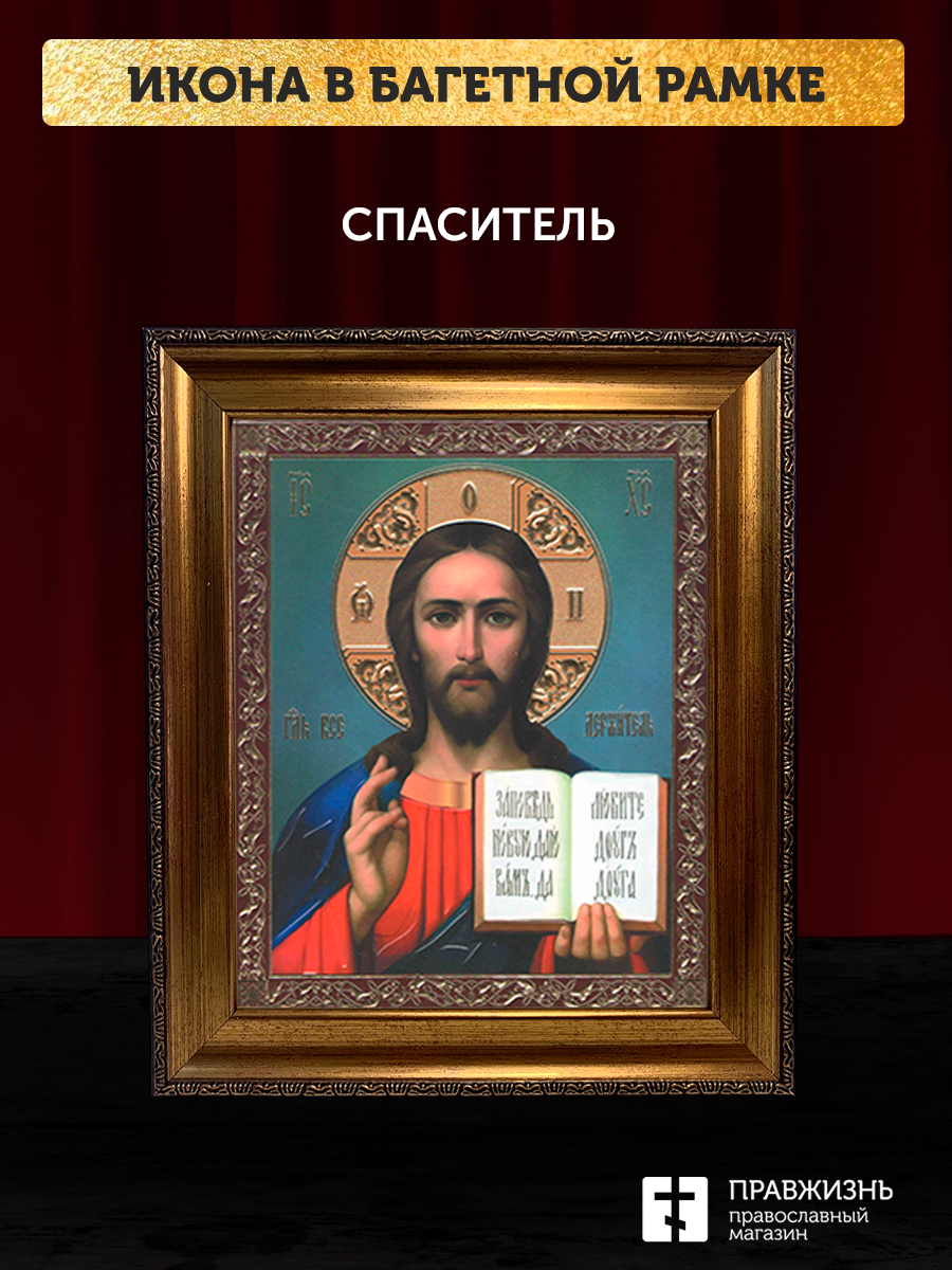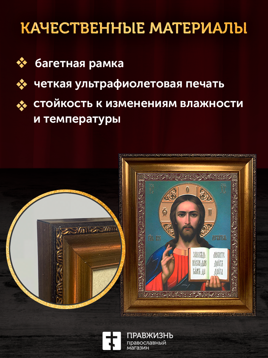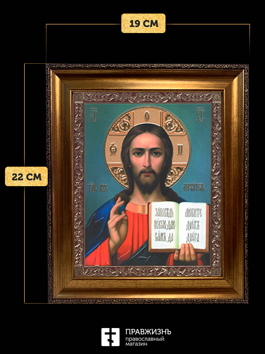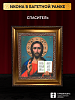 Икона Спаситель, бронзовая багетная рамка узкая с узором 15х18 см