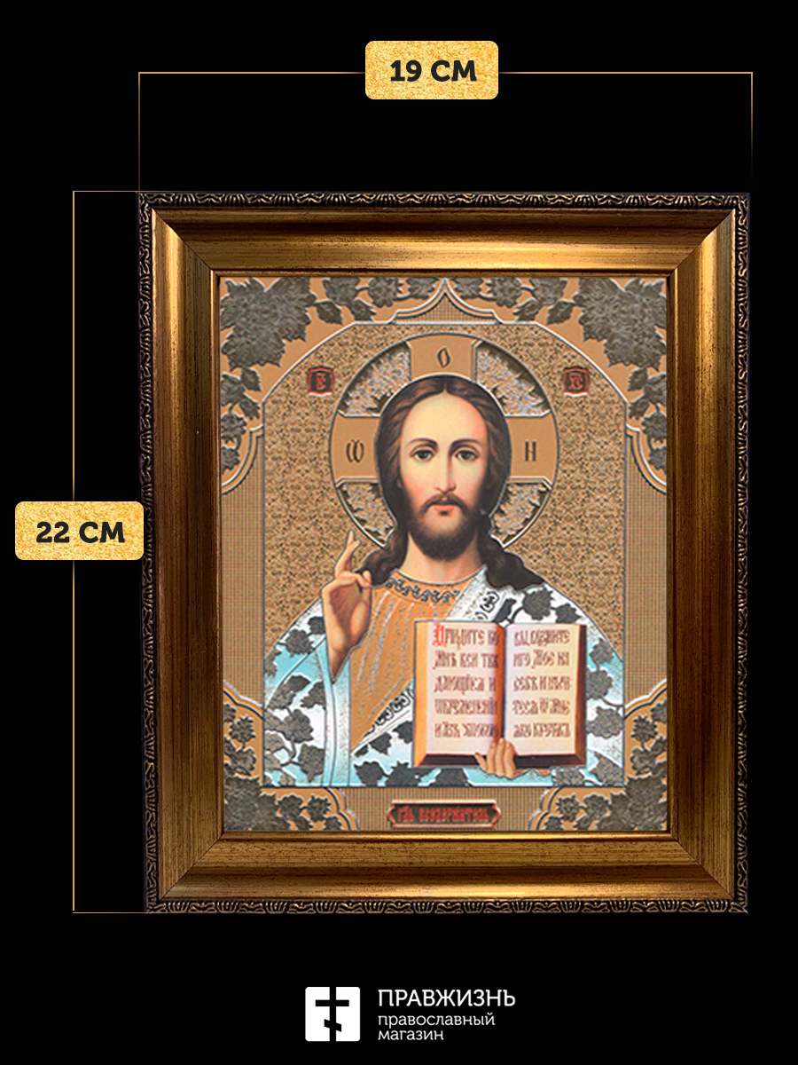 Икона Спаситель, бронзовая багетная рамка узкая с узором 15х18 см