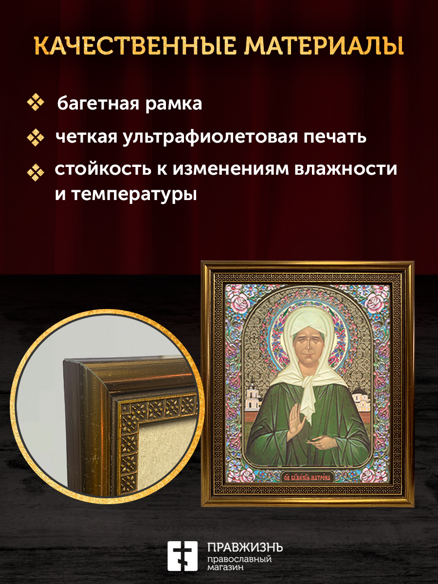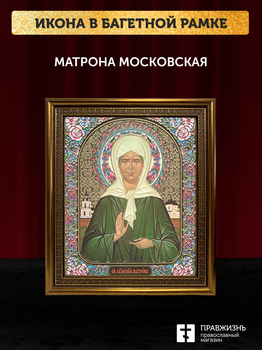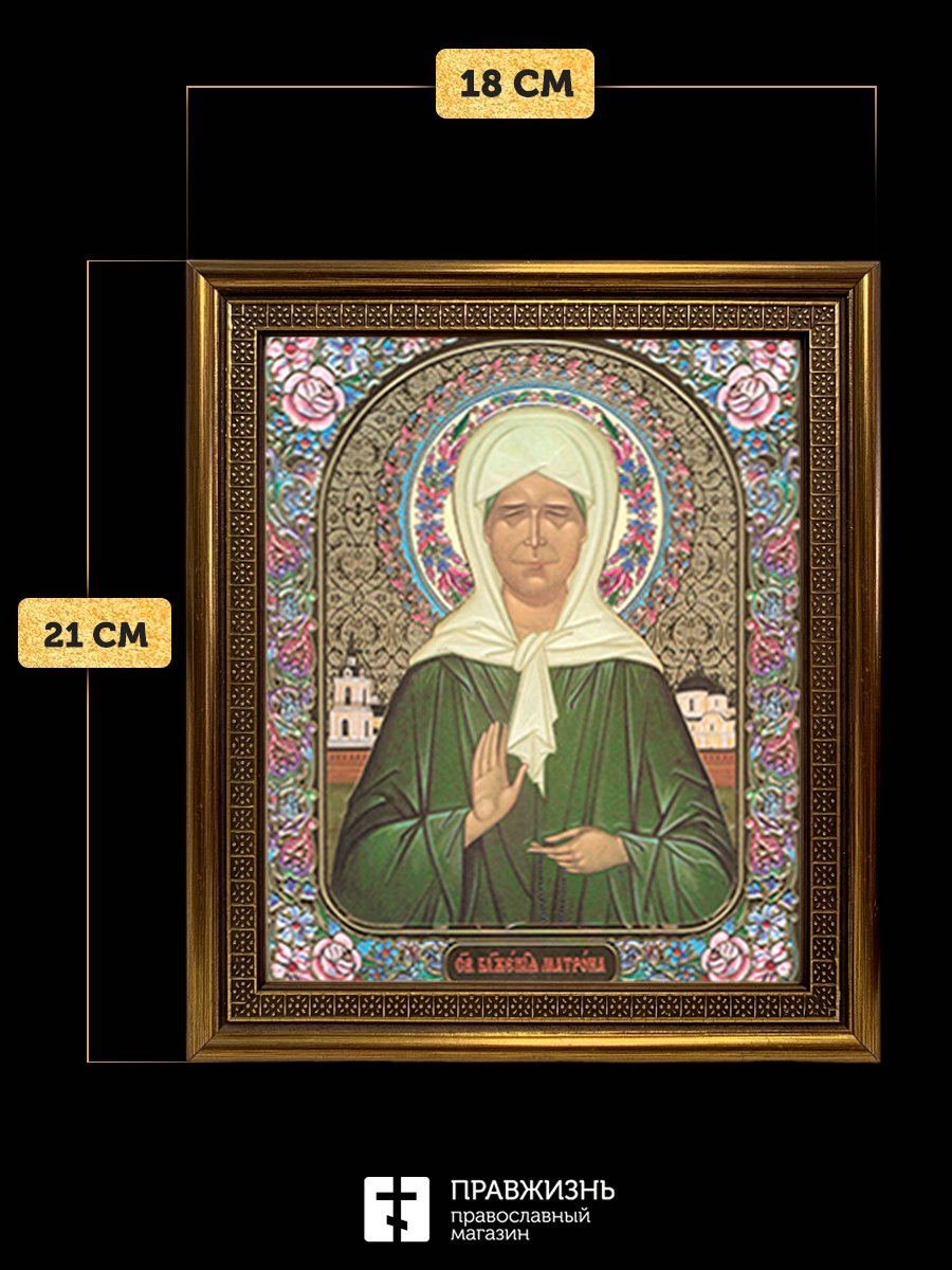 Икона Матрона Московская, бронзовая багетная рамка узкая с узором 15х18 см