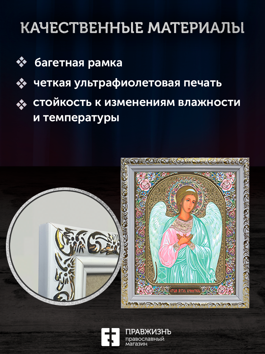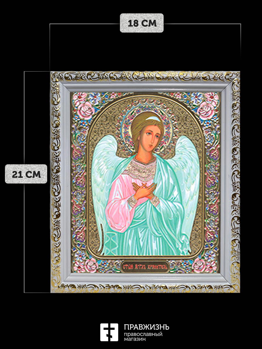 Икона Ангел Хранитель, бронзовая багетная рамка узкая с узором 15х18 см