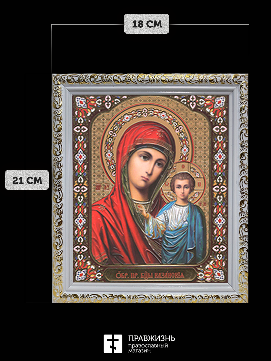 Икона Казанская Божия Матерь, бронзовая багетная рамка узкая с узором 15х18 см