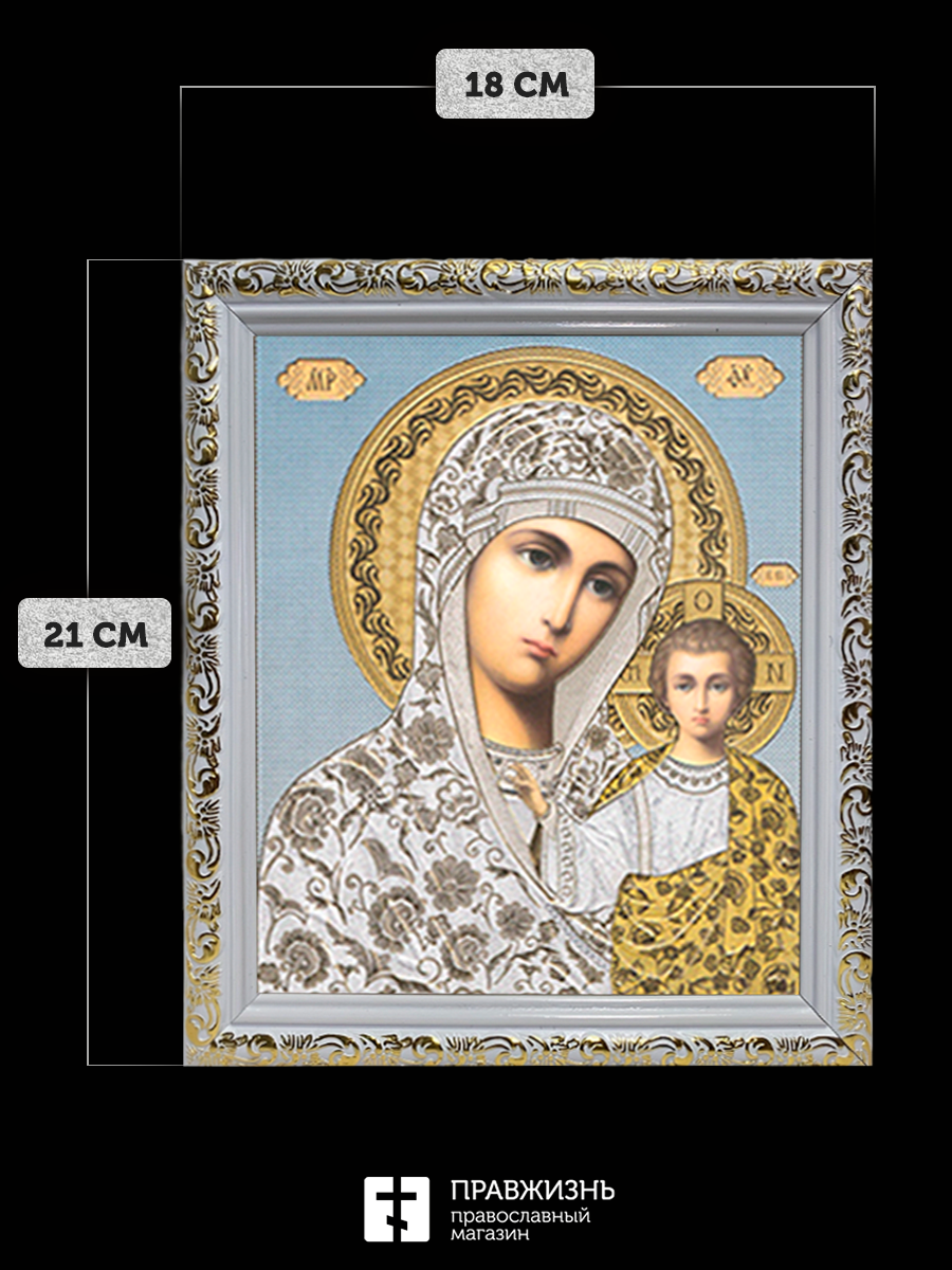 Икона Казанская Божия Матерь, бронзовая багетная рамка узкая с узором 15х18 см