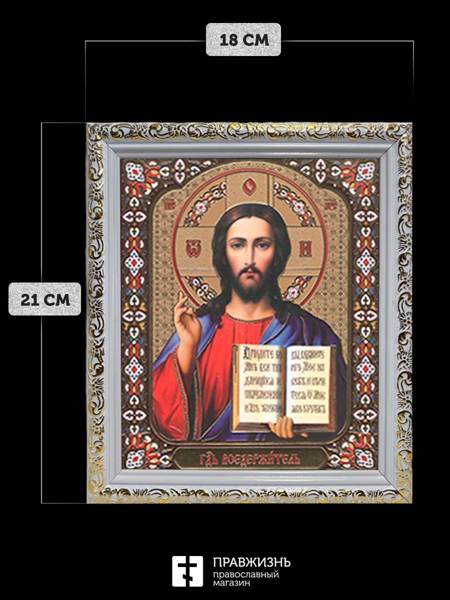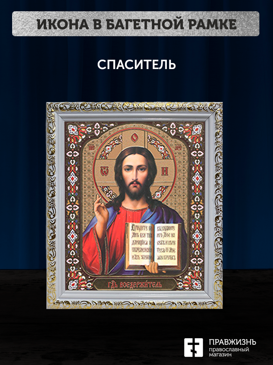 Икона Спаситель, бронзовая багетная рамка узкая с узором 15х18 см
