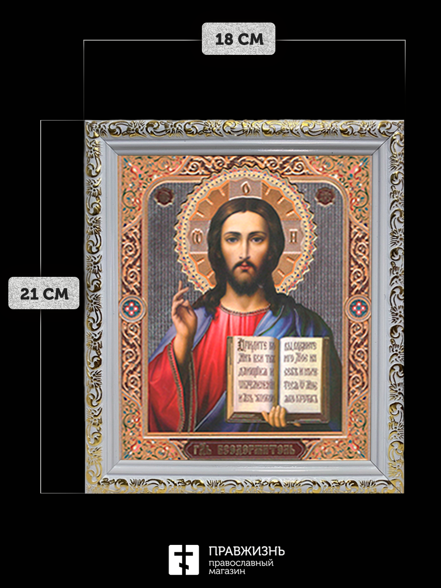Икона Спаситель, бронзовая багетная рамка узкая с узором 15х18 см