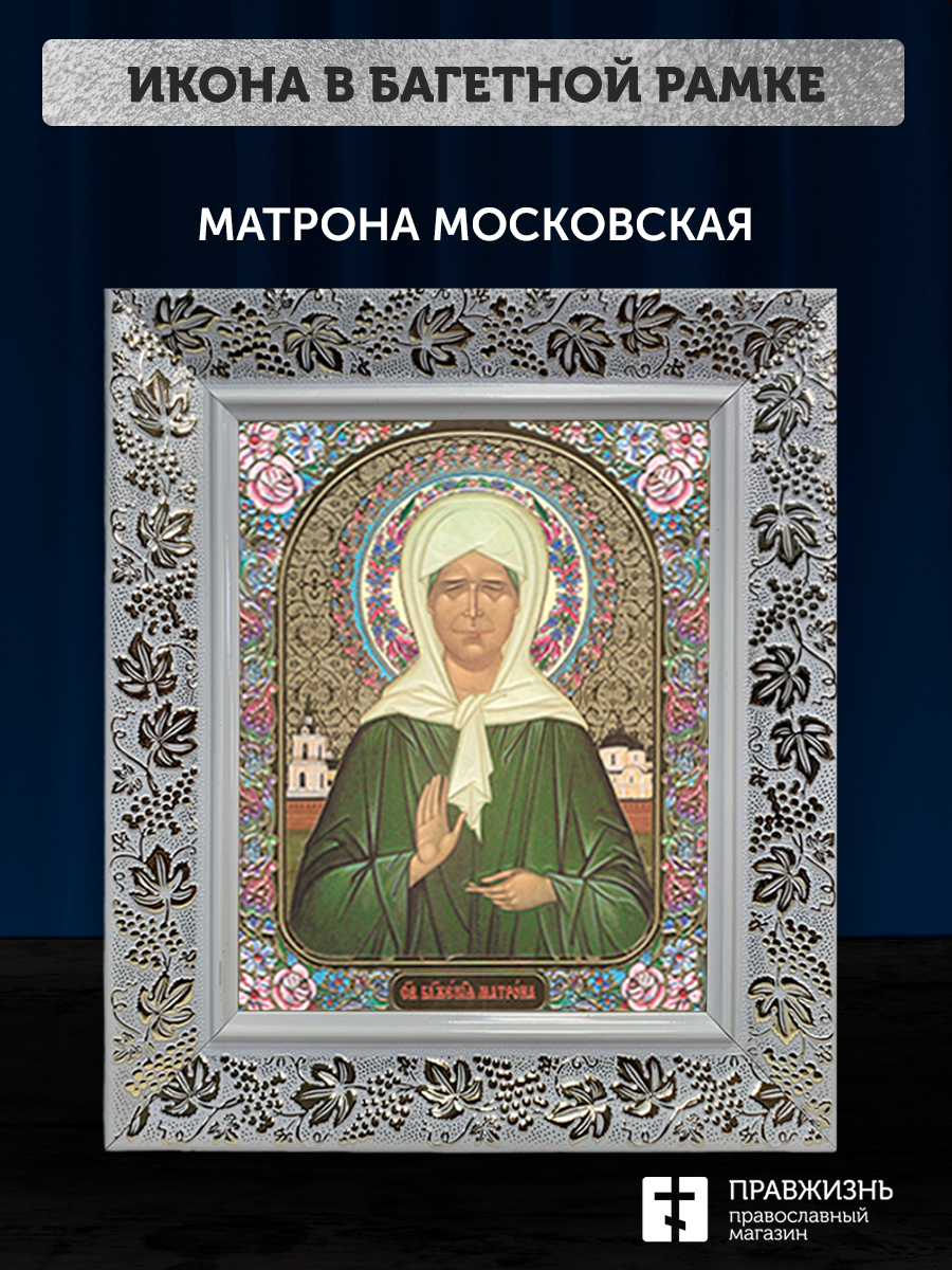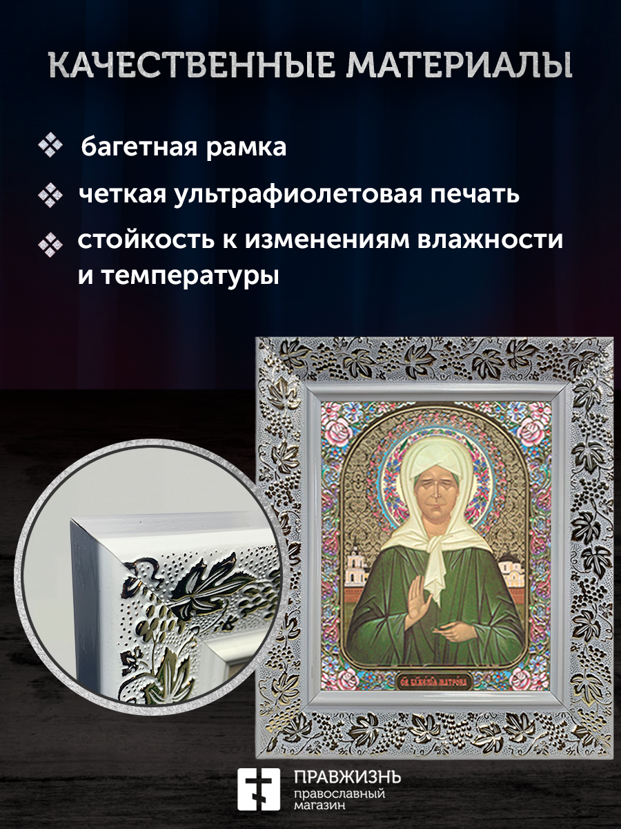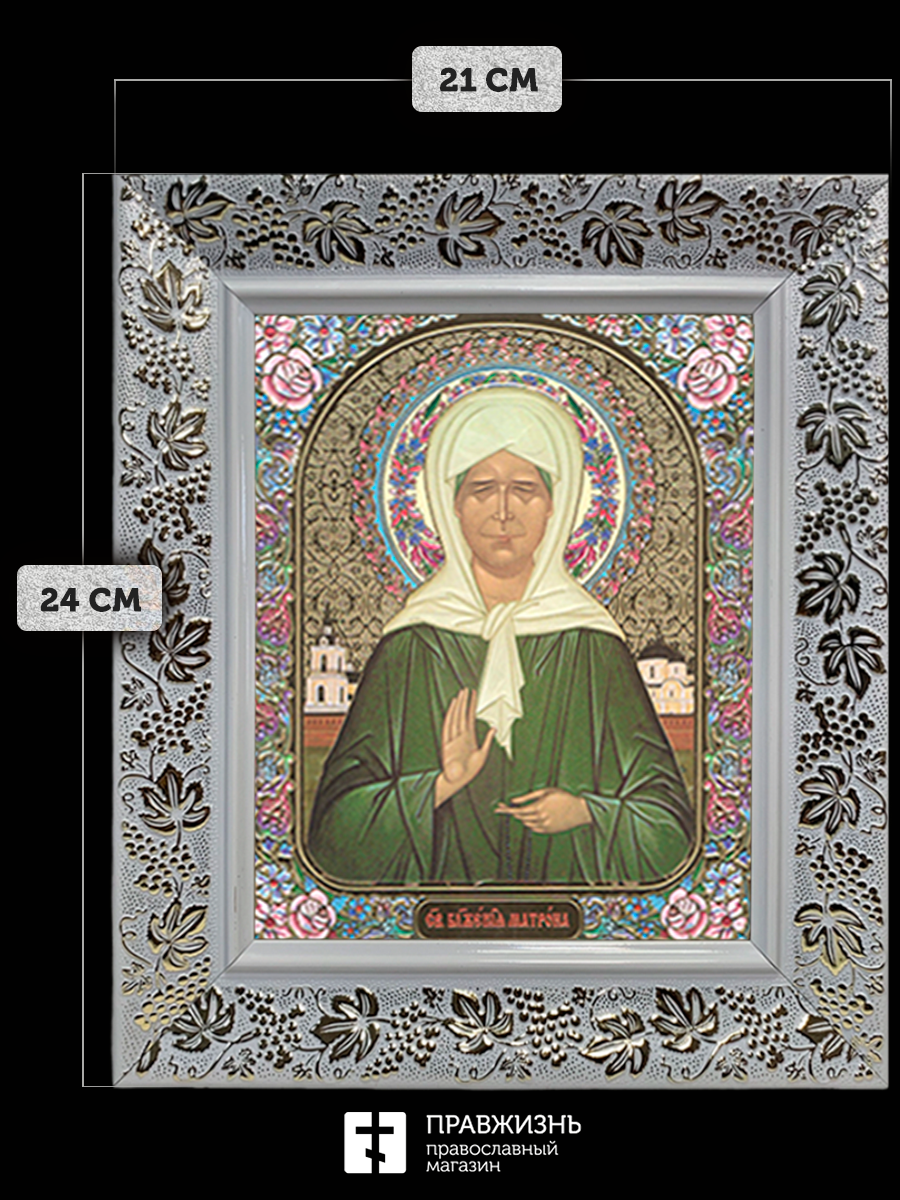 Икона Матрона Московская, бронзовая багетная рамка узкая с узором 15х18 см