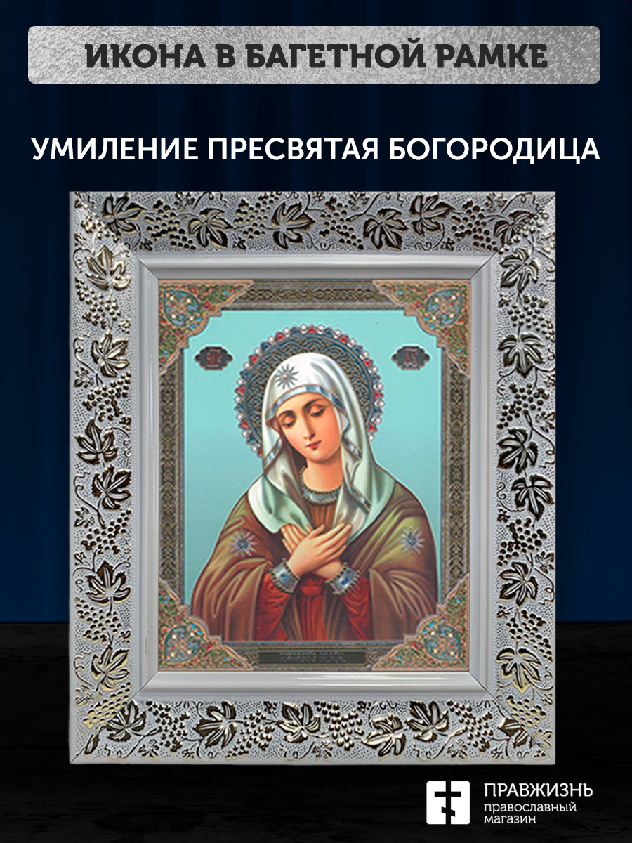 Икона Умиление Божия Матерь, бронзовая багетная рамка узкая с узором 15х18 см