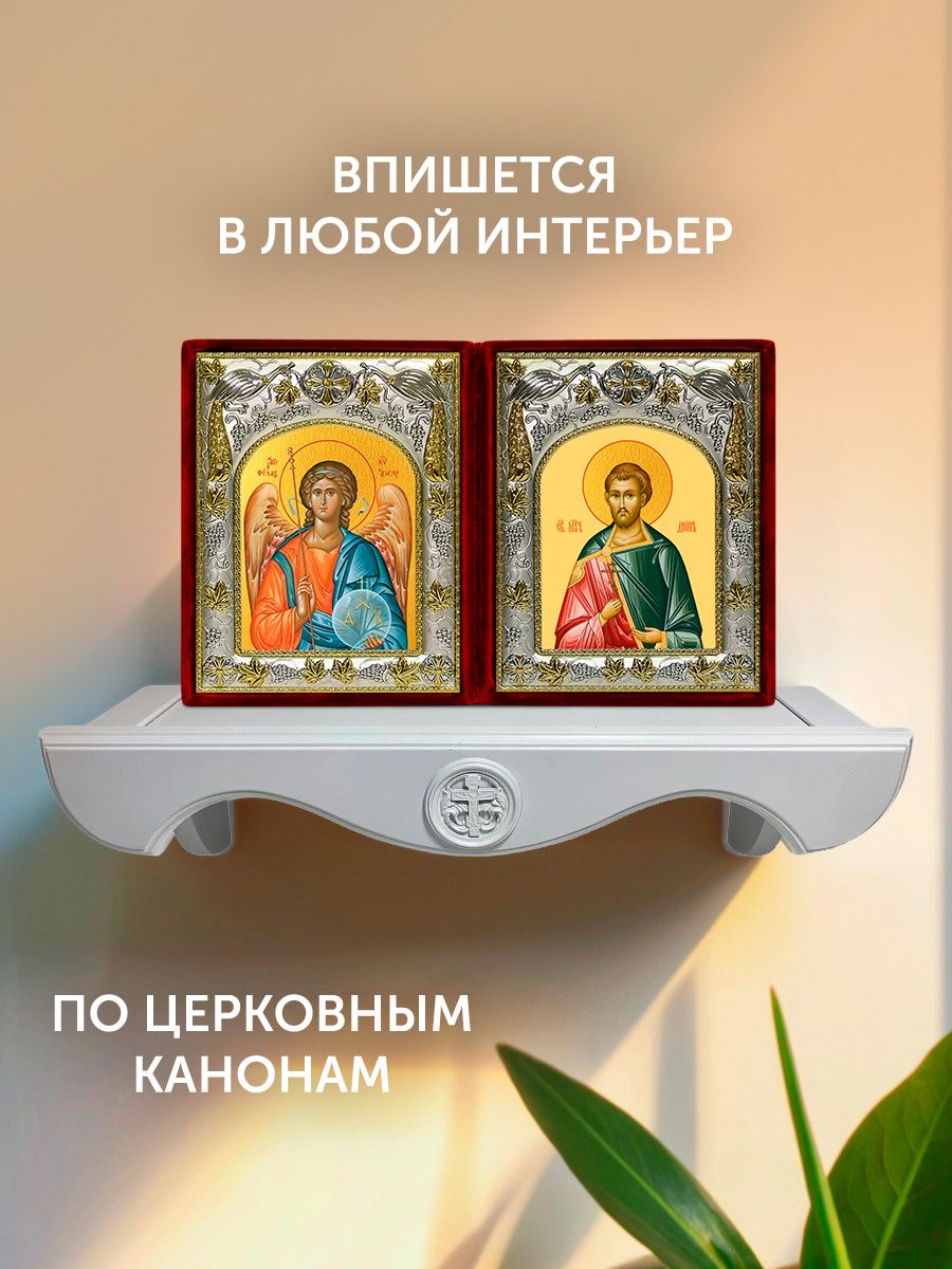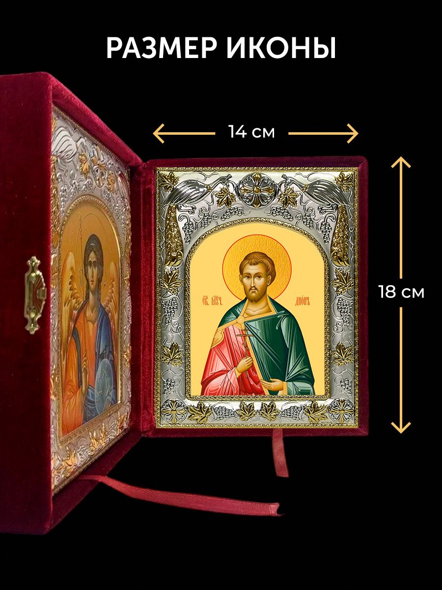 Икона Дион Римский и Ангел Хранитель в ризах именной бархатный складень, 19х15х7см