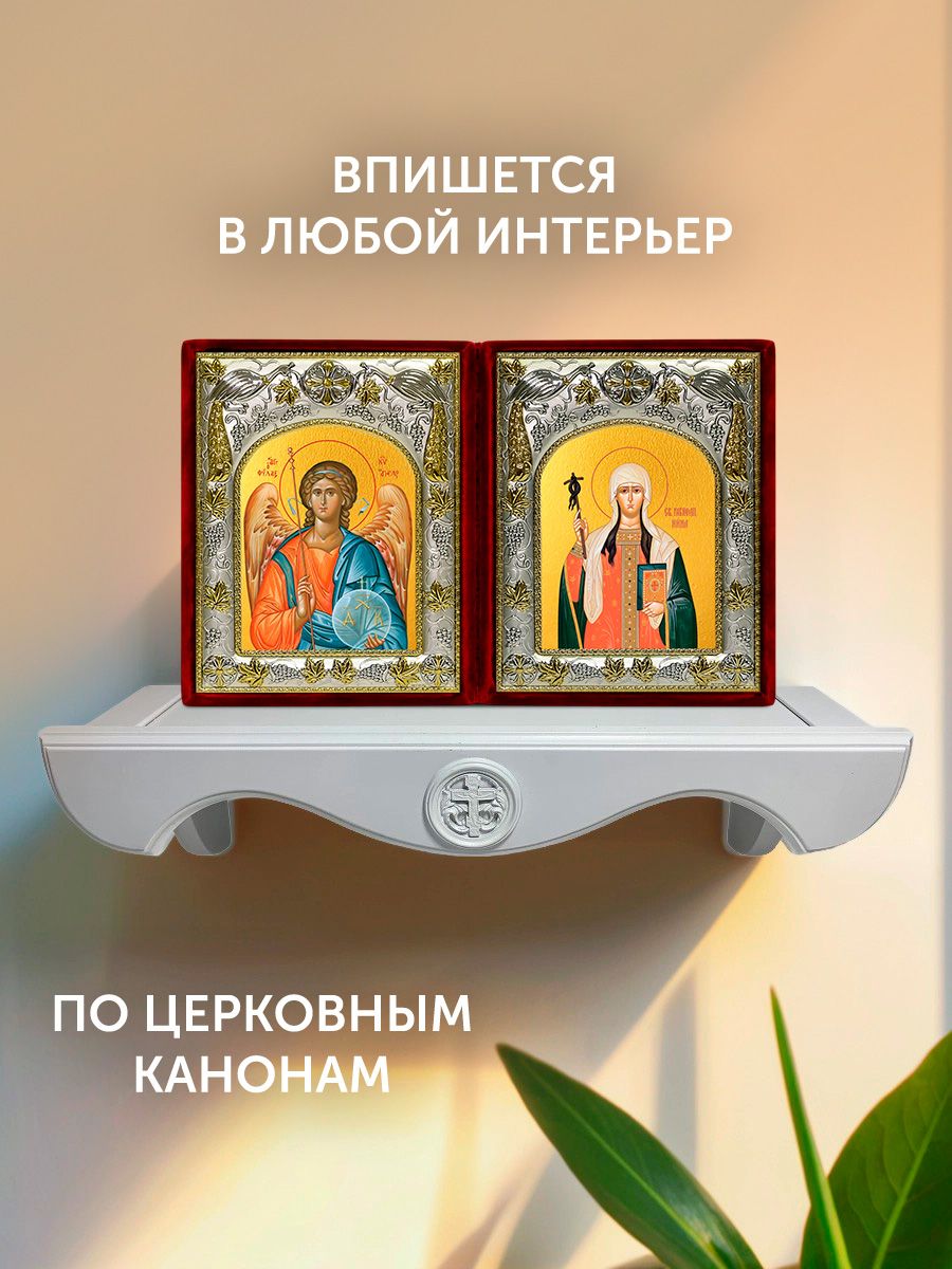 Икона Нина Просветительница Грузии и Ангел Хранитель в ризах именной бархатный складень, 19х15х7см
