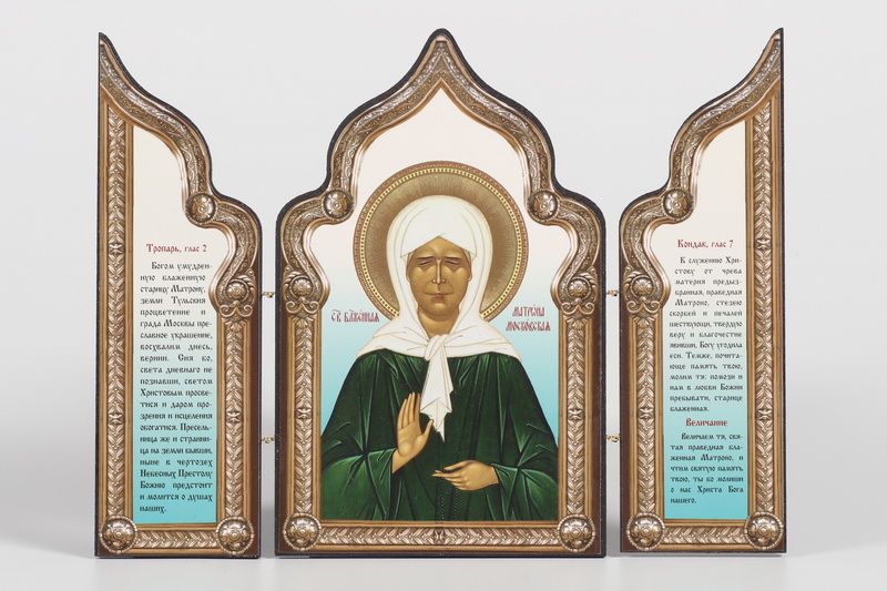Складни деревянные 18х24 трехстворчатые, тиснение, арочные, фигурные, в упаковке Матрона Московская (с венчиком)