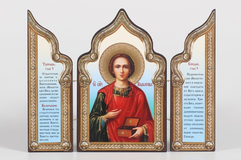 Складни деревянные 18х24 трехстворчатые, тиснение, арочные, фигурные, в упаковке Пантелеимон