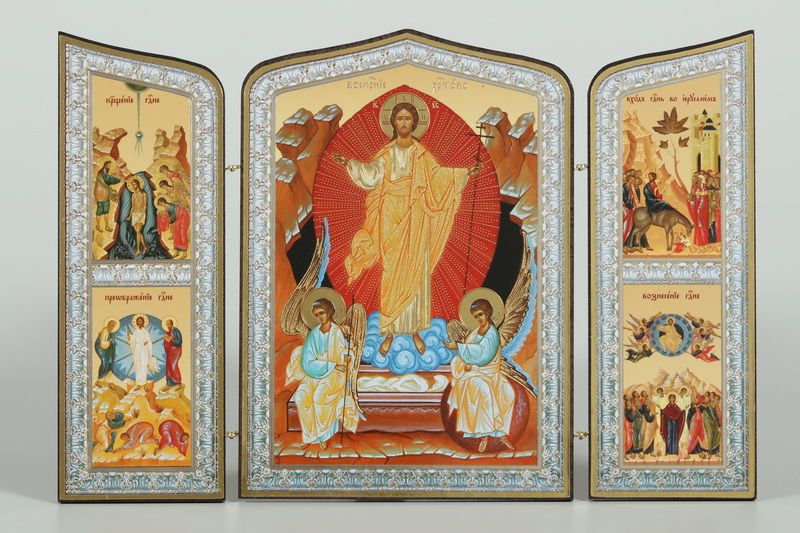 Складни деревянные 19х28 трёхстворчатые, двойное тиснение, фигурные, в упаковке Воскресение Христово 27