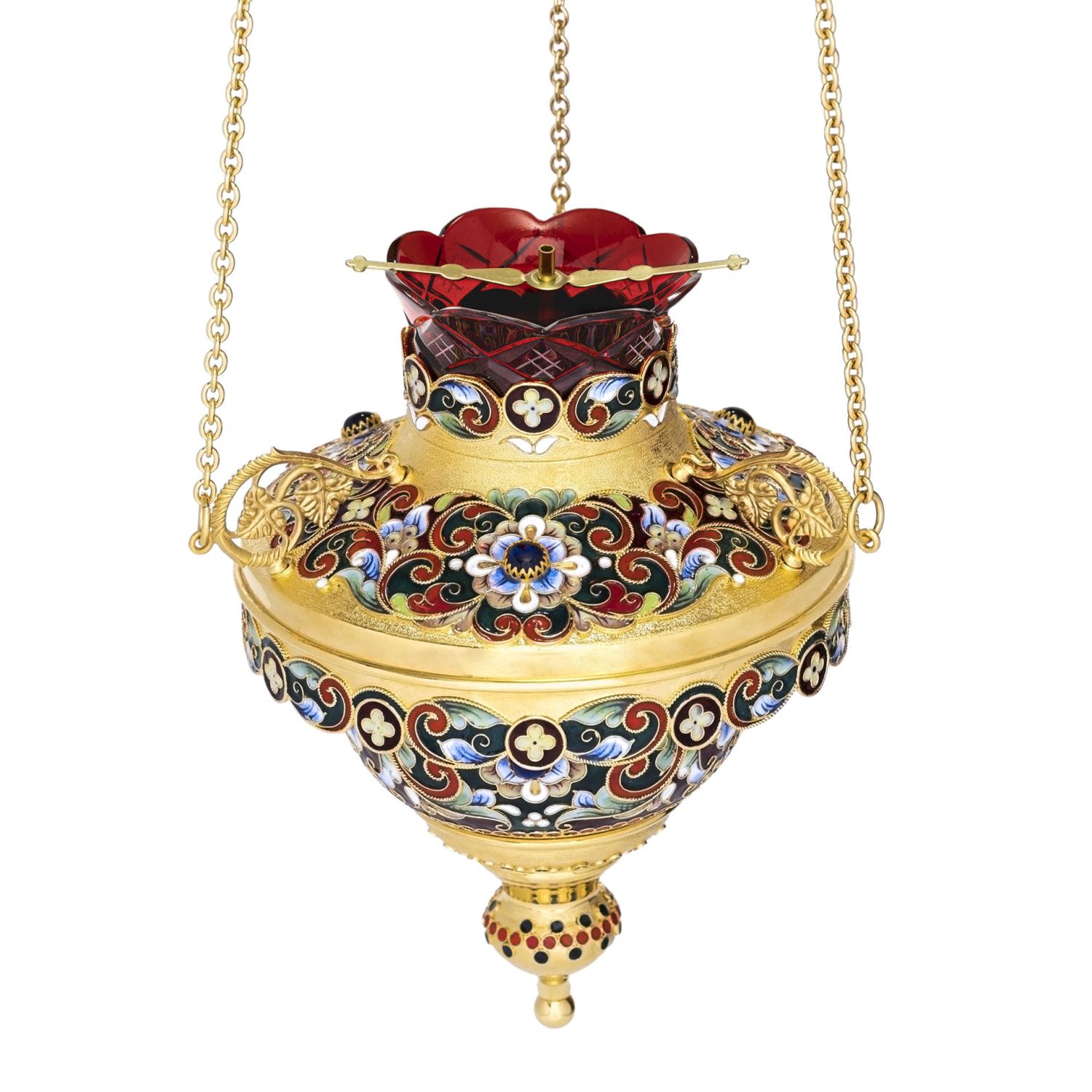 Лампада филигранная казанская с росписным кантом / золочение
