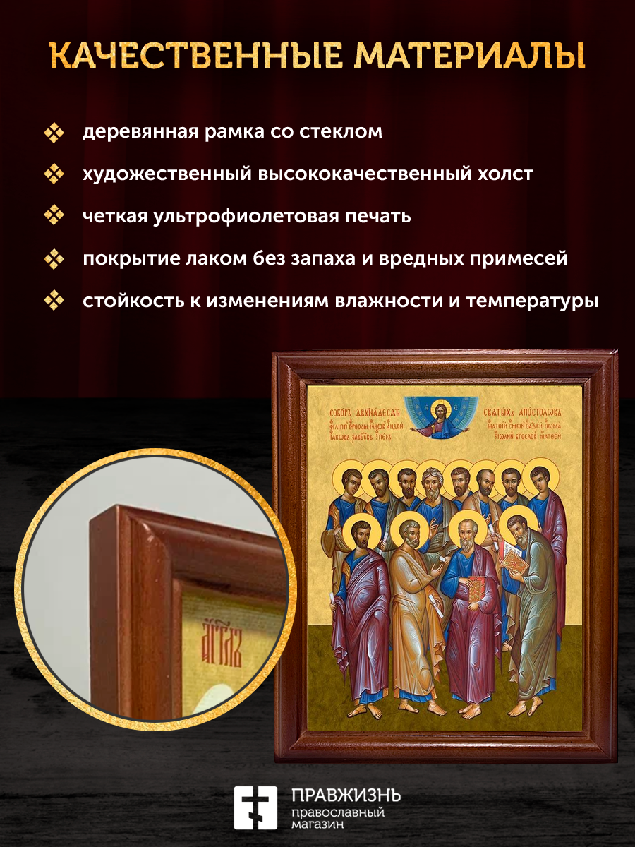Икона собор двенадцати апостолов, деревянная рамка со стеклом 15х18х2 см