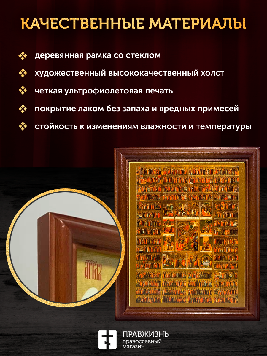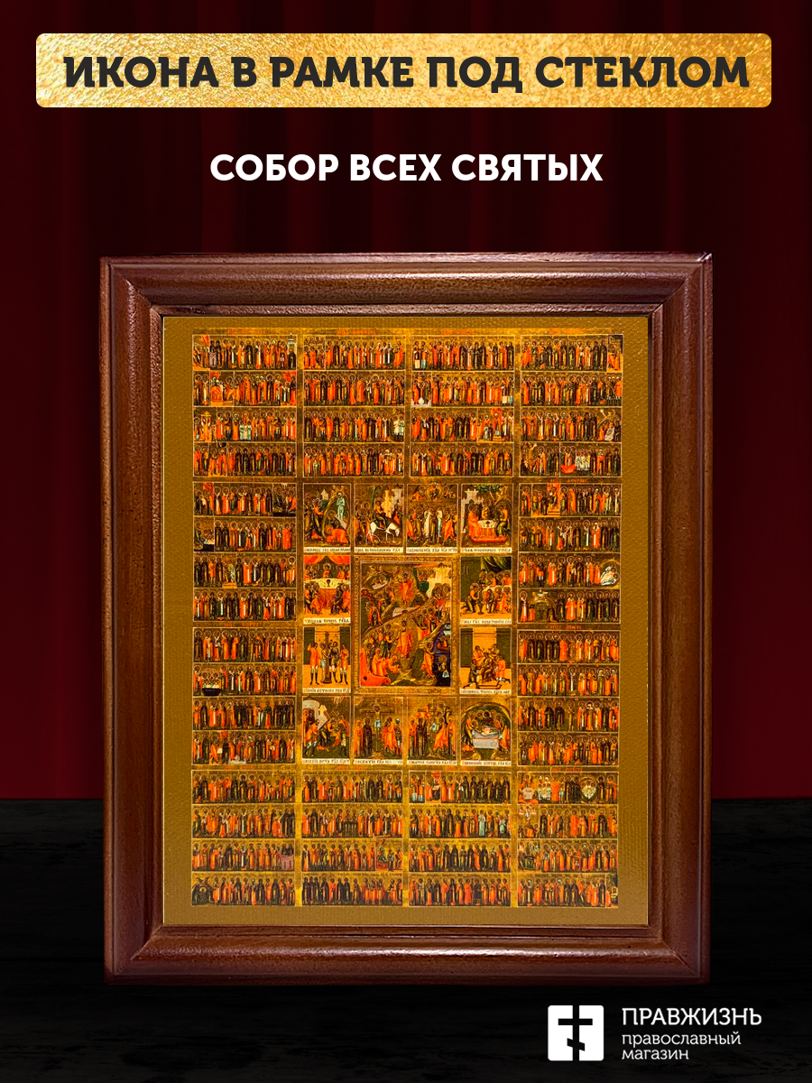 Икона Собор Всех Святых, деревянная рамка со стеклом 15х18х2 см 1233