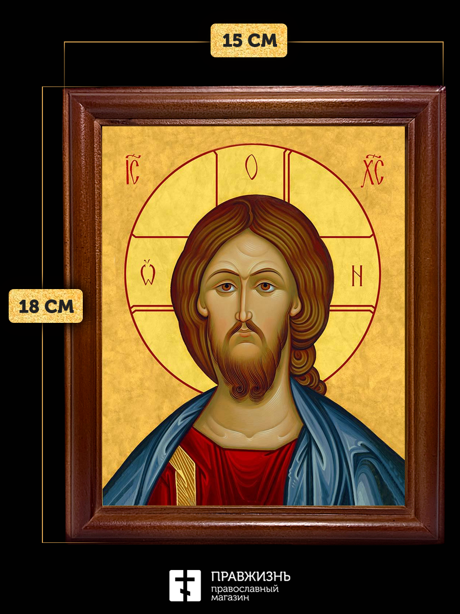 Икона Спаситель Господь Иисус Христос, деревянная рамка со стеклом 15х18х2 см 214