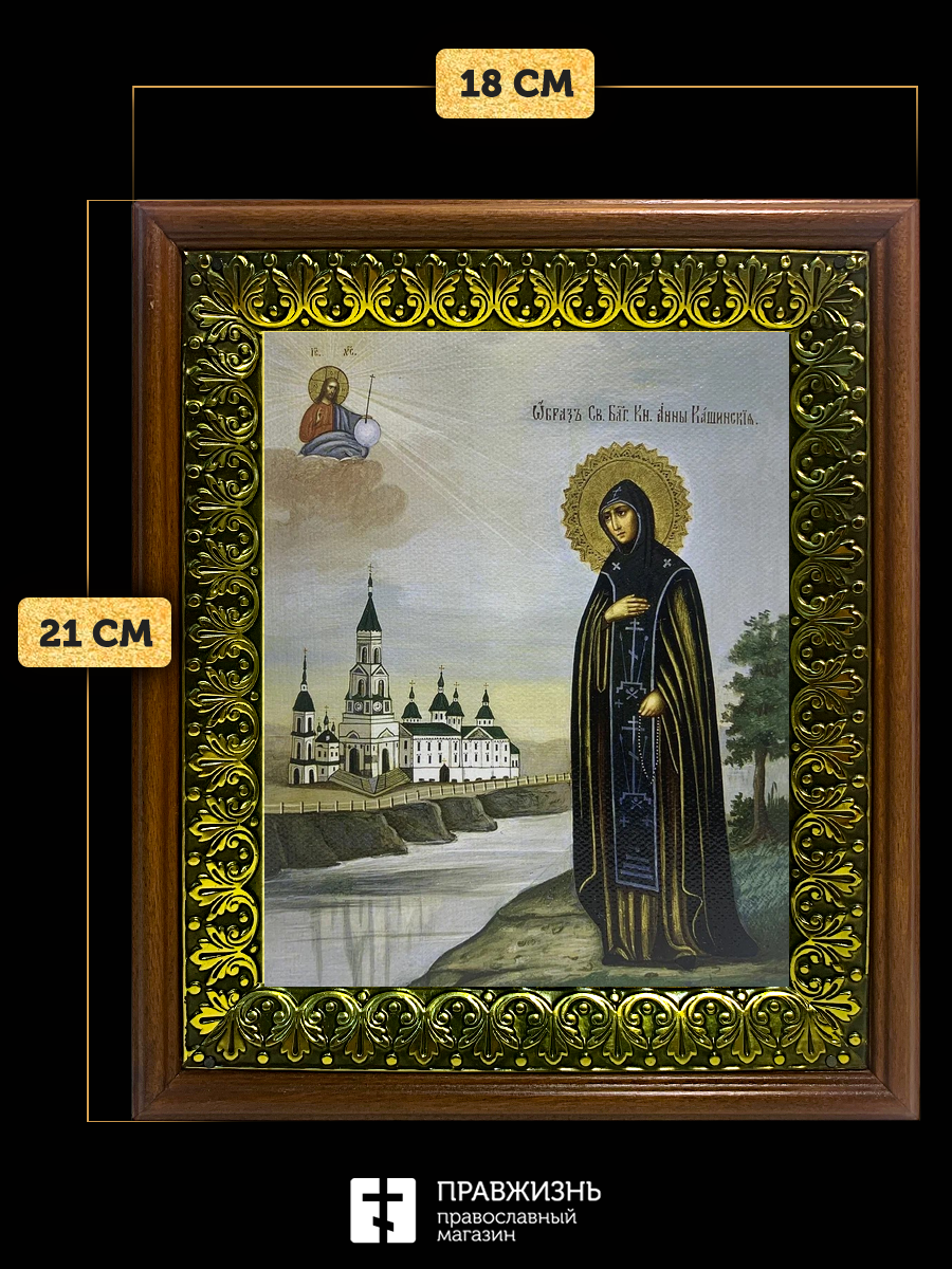 Икона Анна Кашинская благоверная княгиня, деревянная рамка с басмой и стеклом 18х21х2,5 см 205
