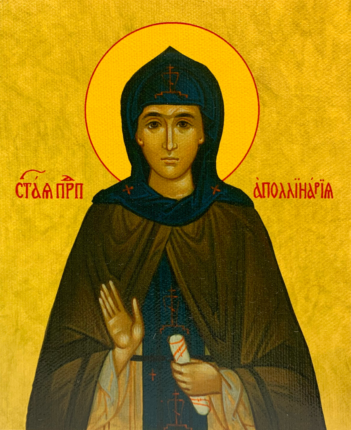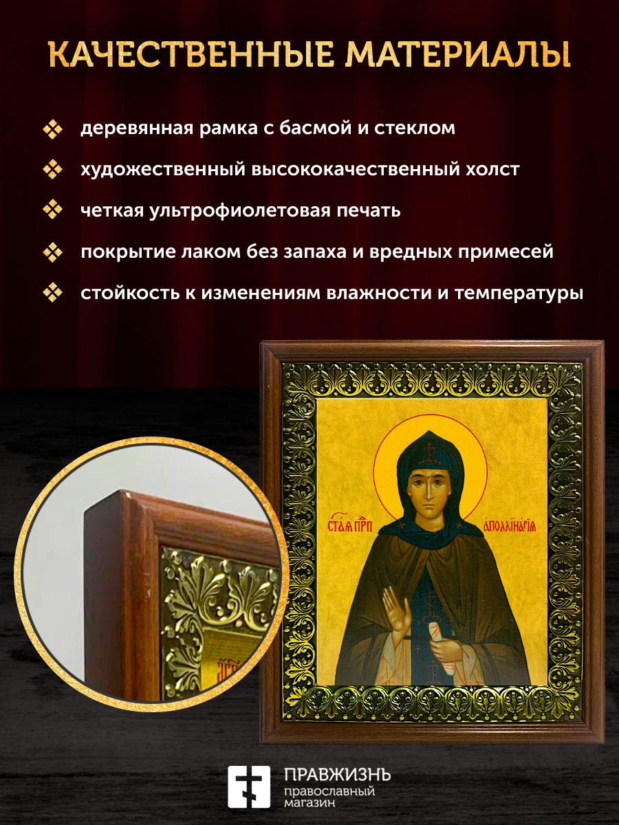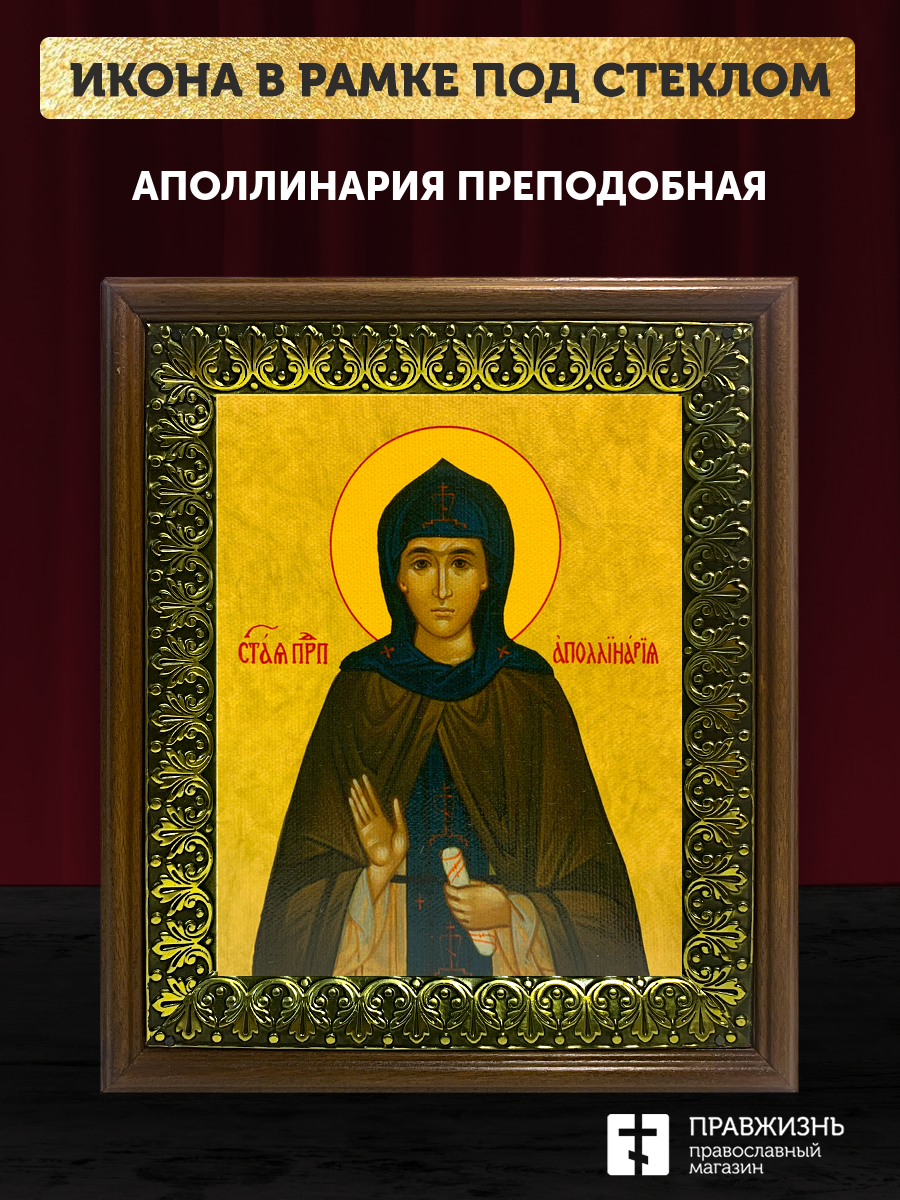 Икона Аполлинария преподобная, деревянная рамка с басмой и стеклом 18х21х2,5 см 031