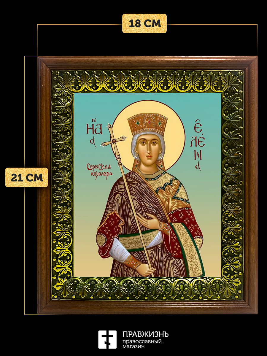 Икона Елена Сербская преподобная, деревянная рамка с басмой и стеклом 18х21х2,5 см 309