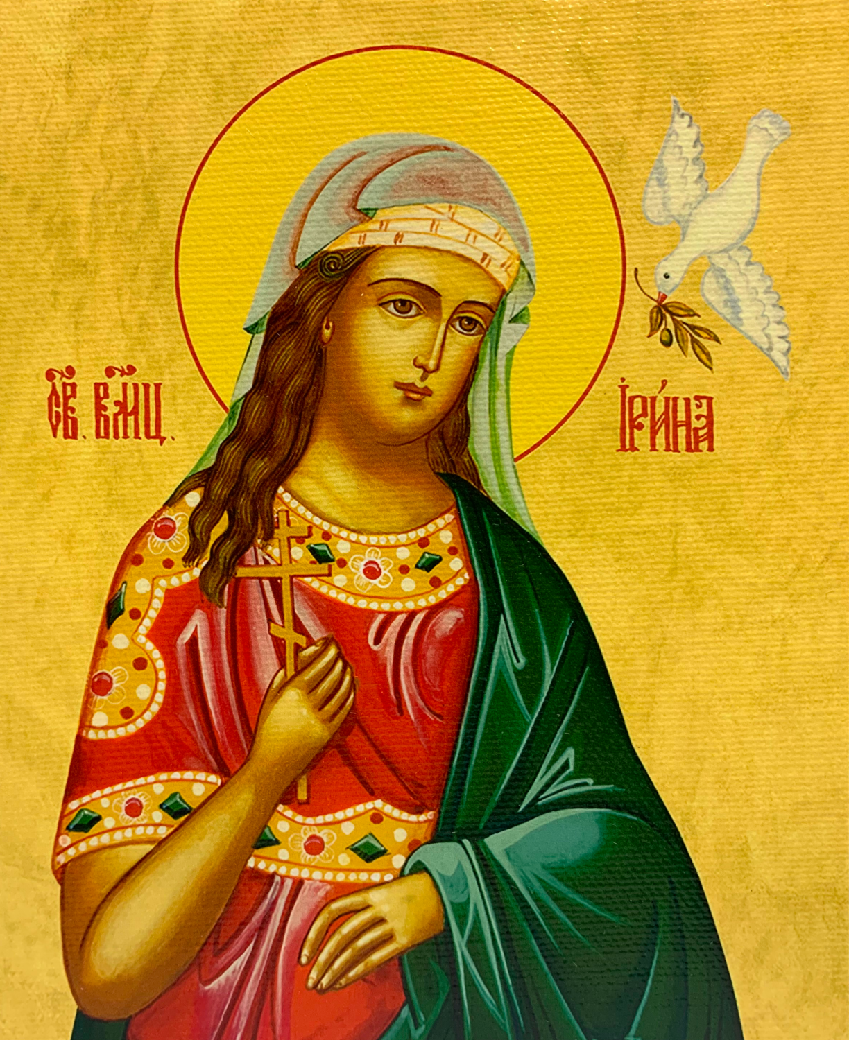 Икона Ирина Македонская великомученица, деревянная рамка с басмой и стеклом 18х21х2,5 см 083