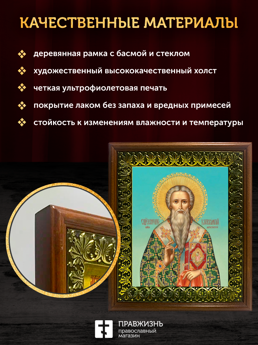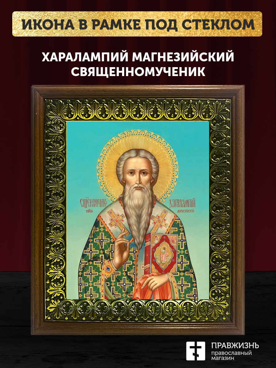 Икона Харалампий Магнезийский священномученик, деревянная рамка с басмой и стеклом 18х21х2,5 см 1090