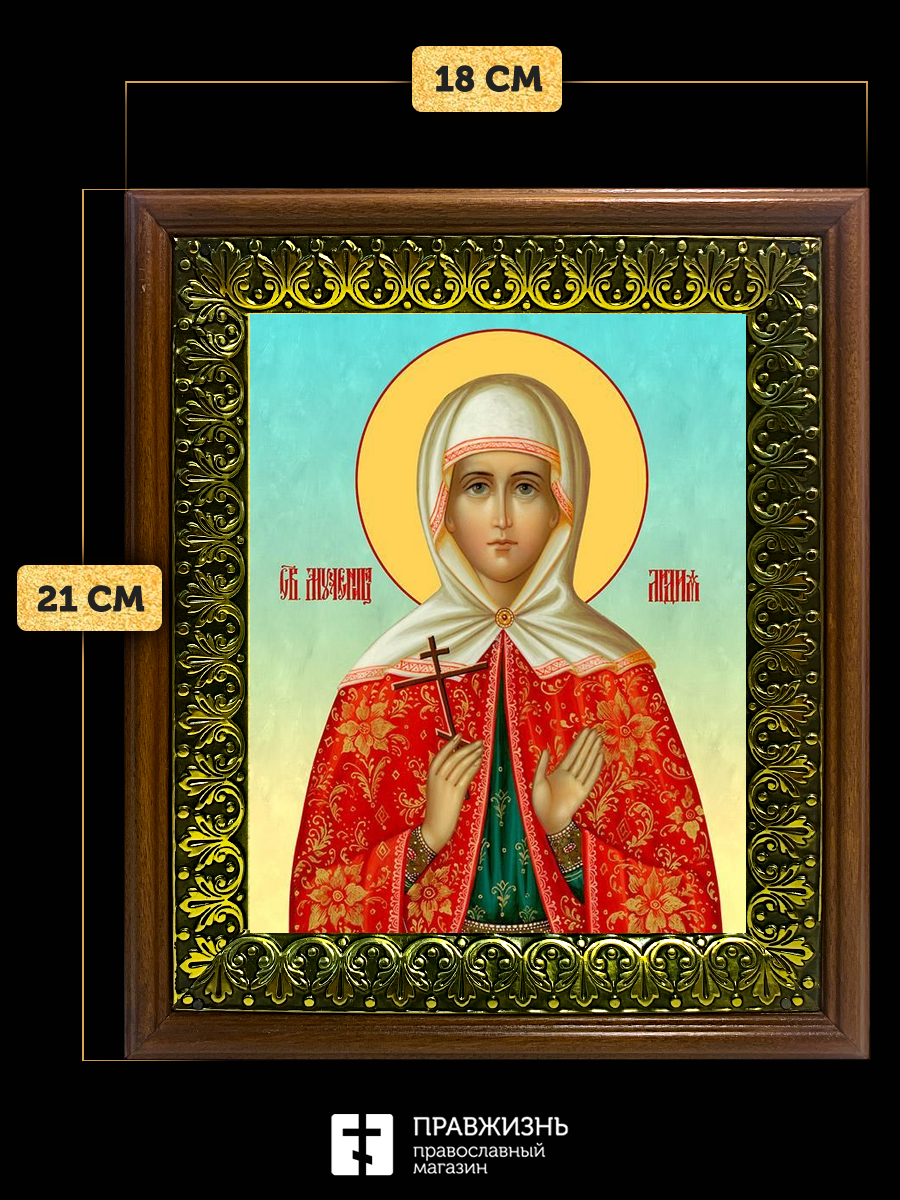 Икона Лидия Иллирийская мученица, деревянная рамка с басмой и стеклом 18х21х2,5 см 092