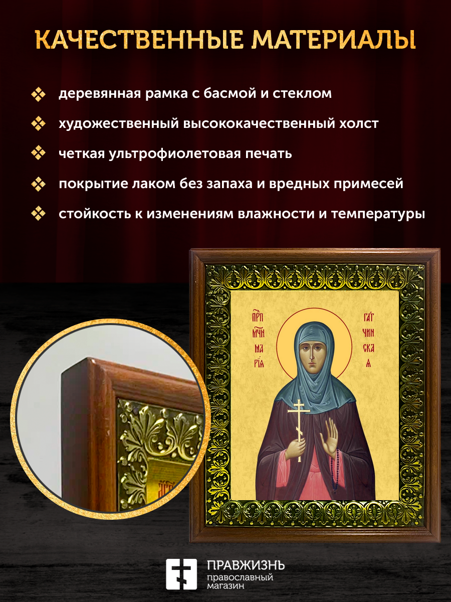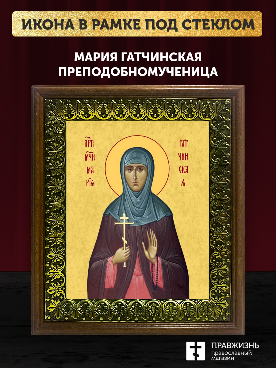 Икона Мария Гатчинская преподобномученица, деревянная рамка с басмой и стеклом 18х21х2,5 см 894