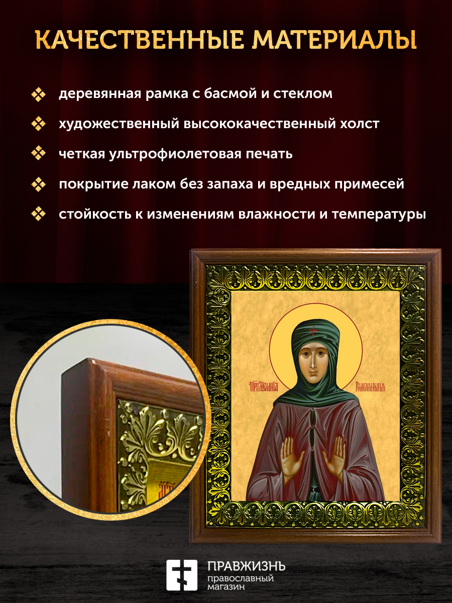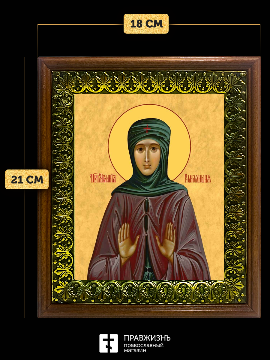 Икона Мелания Римляныня преподобная, деревянная рамка с басмой и стеклом 18х21х2,5 см 157